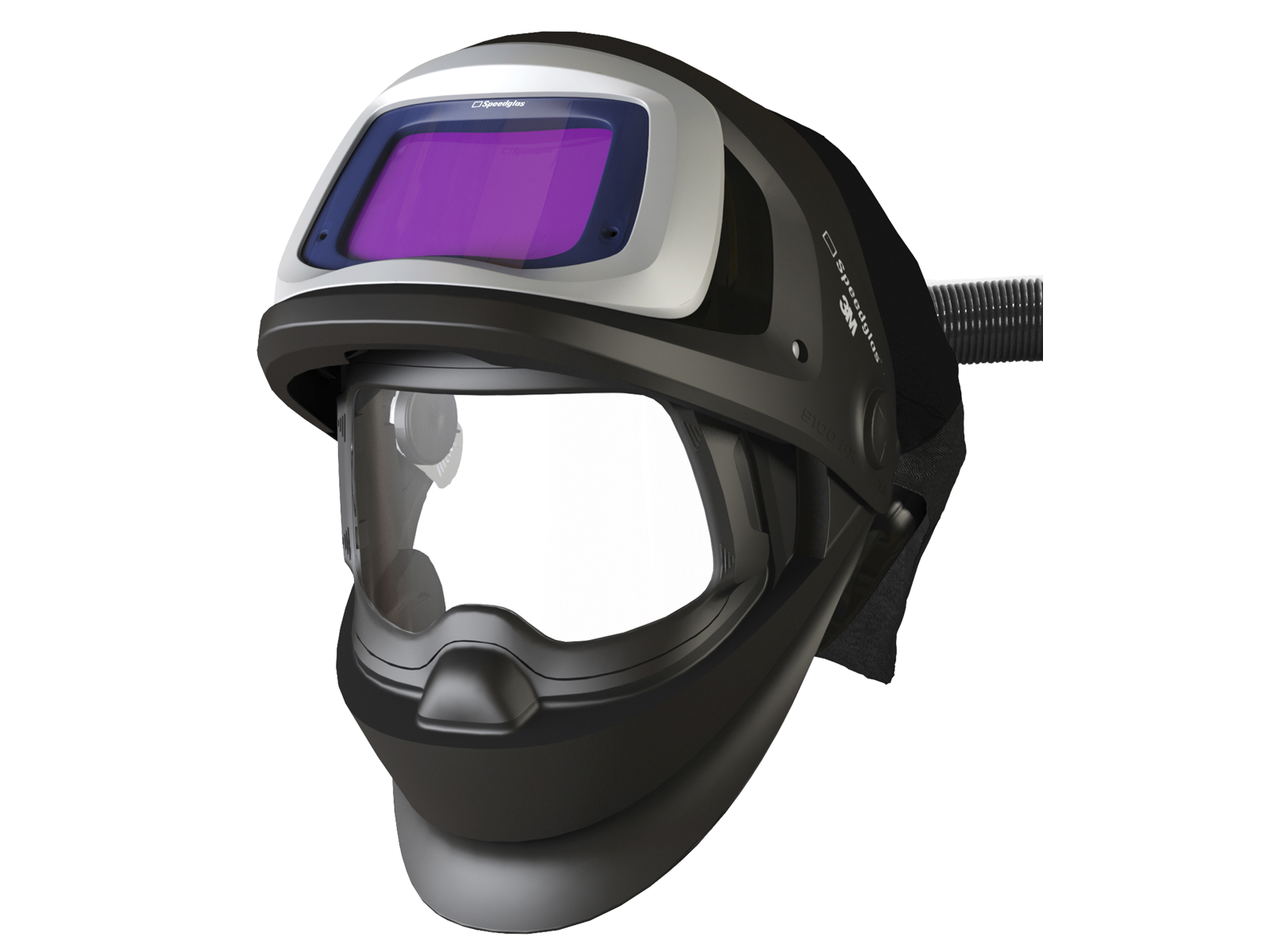 Speedglas svejsehjelm med automatisk svejsefilter 9100XX og Adflo el-drevet luftventilation, samt taske. Svejsefilter med variabel mørk skygge 5, 8, 9-13 for de fleste typer buesvejsning. Det store (17 × 10 cm) klare beskyttelsesvisir er buet med gode synsforhold opad, nedad og perifert. Delay funktion for indstilling af åbningstiden fra mørk til lys. Sensibiliteten af ??bue-detektion kan justeres. Sensorer 3. Skiftetid mørk-lys 40-1.300 ms. Skiftetid lys-mørk 0,1 ms. Lystilstand: shade 3. UV/IR-beskyttelse: shade 13.
