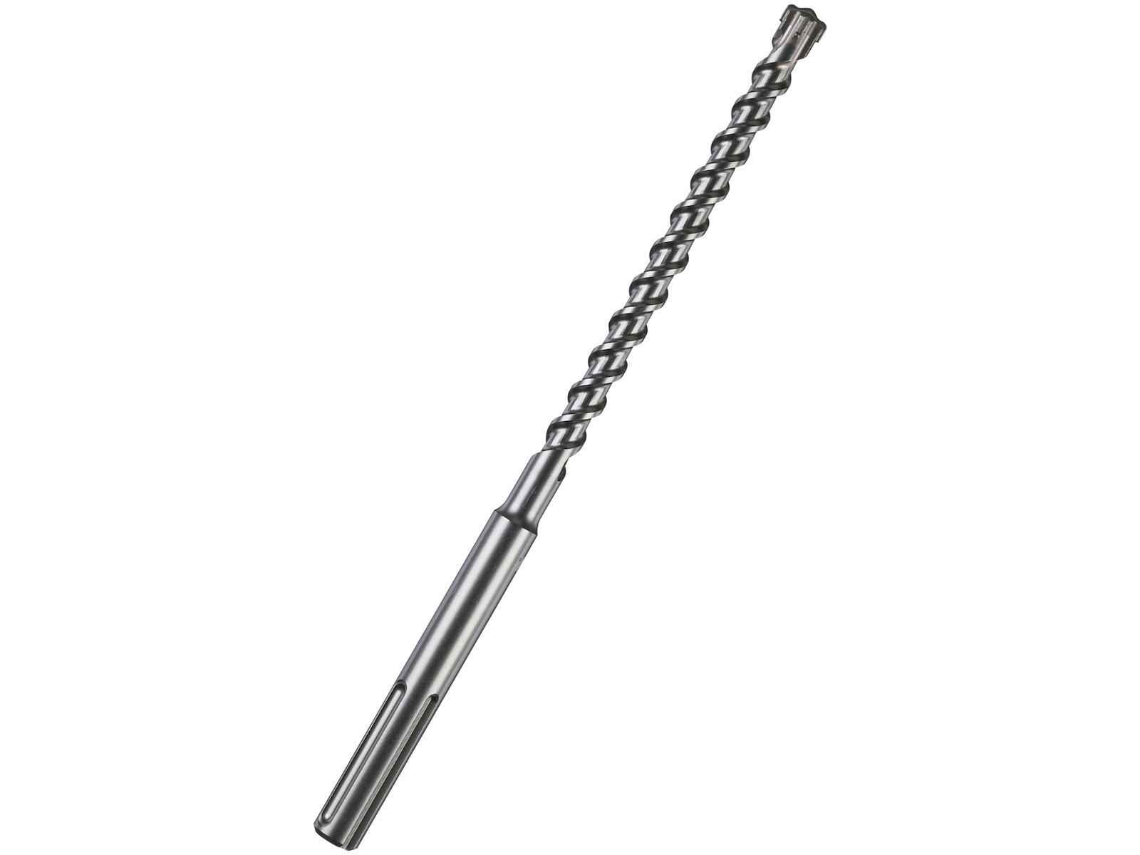 • SDS-max K-Hex bor med stor karbidspids med affasninger for armeringsjern og symmetrisk 4 skærs geometri (4×90°). Centreringspunkt med 130° vinkelspids giver optimal centrering og sikrer præcis styring under boring. Stort og robust sekundært skær med dynamisk og kurvet skærekant for optimal støtte til hovedskæret og hurtigere boring. Kortere spiralsnoninger sikrer hurtigere transport af borestøv fra spidsen til spiralen, hvilket betyder både mindre slitage og varmeudvikling ved borets spids. Slidmærker på begge sider af selve skæret. Så længe slidmærket er synligt, kan den nøjagtige diameter garanteres til fx forankring.