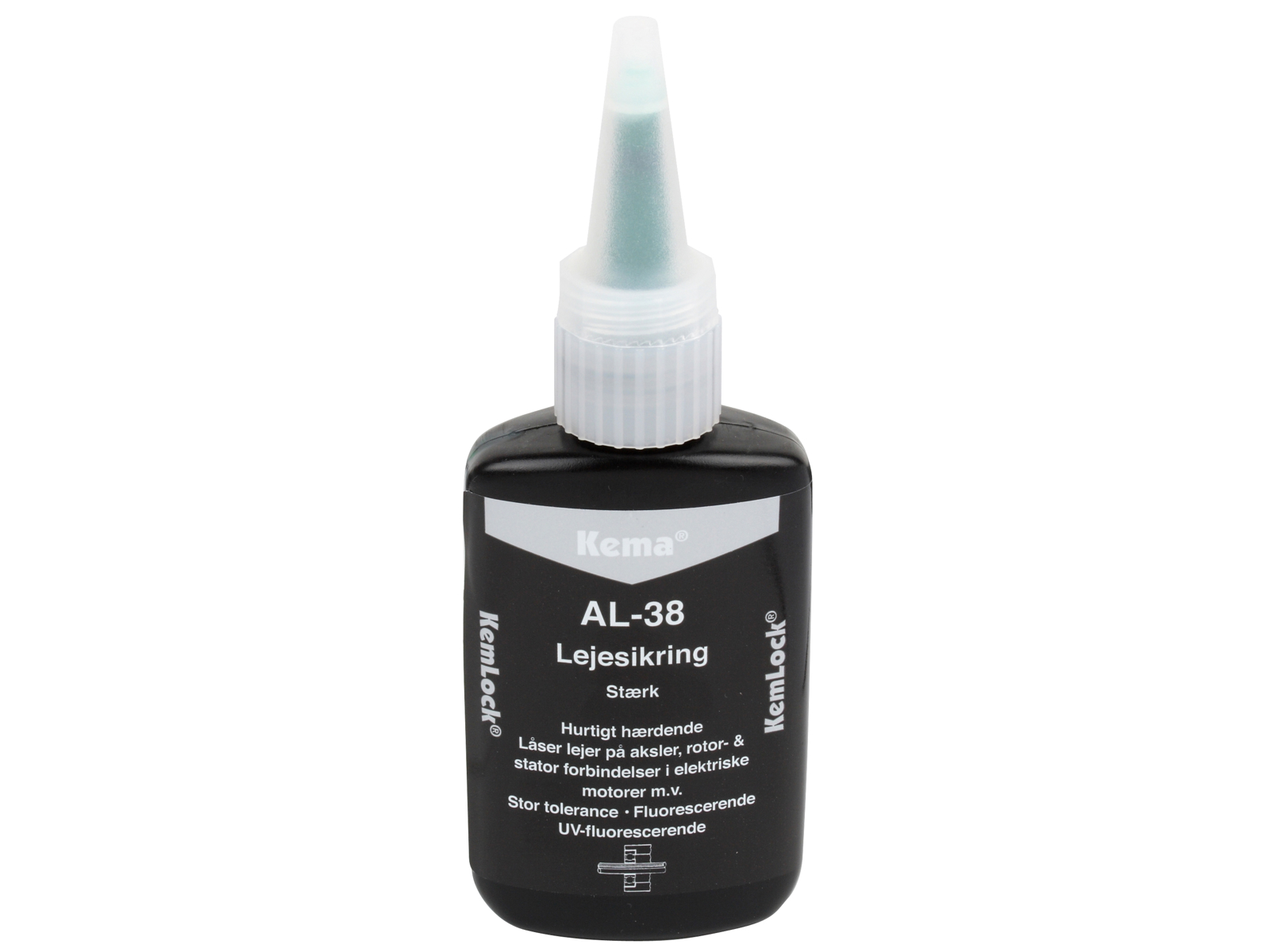 KemLock Lejesikring anvendes til sikring af lejer, aksler, bøsninger, m.v. Forstærker prespasninger, tillader større mekaniske tolerancer samt tætner mod lækager. Pga. den lave dosering og den hurtige hærdetid er KemLock særdeles velegnet til samlebåndsproduktion. AL-38 meget stærk hurtighærdende til lejer, cylindriske dele større tolerancer produktet lever op til kravene i henhold til NSF/ANSI Standard 61. Godkendt iflg. DIN 751-1 (DVGW).