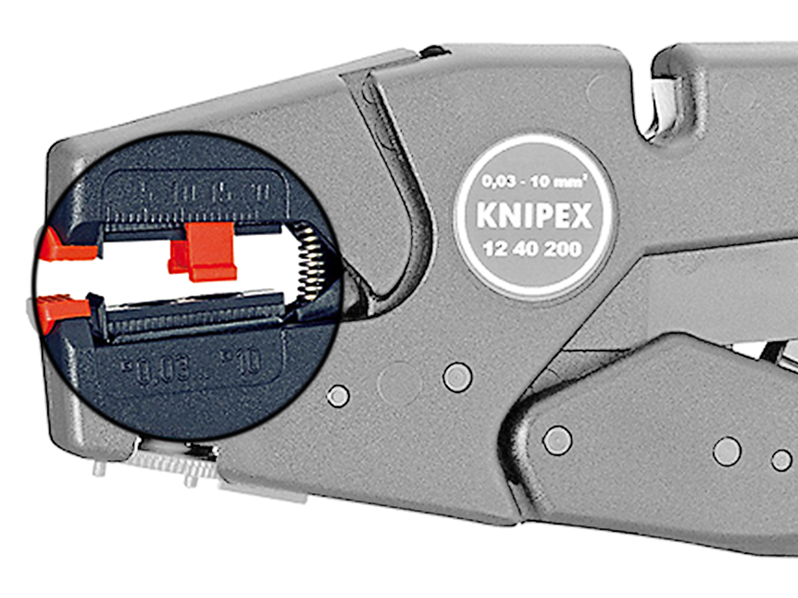 • 1 par reserveklemkæber til 12 40 200. Til en-, fler- og fintrådede ledere med kunststof- eller gummiisolering. Tilpasser sig af sig selv til de forskellige ledertværsnit, derfor ingen beskadigelse af lederne. Skæredybden kan justeres ved forskellige isoleringsmaterialer. Med trådklipper til flertrådede Cu- og Al-ledere op til 10 mm², og entrådet op til 6,0 mm². Let bevægelig mekanisme. Knive og kunststof-klemkæber kan nemt udskiftes. Lav vægt. Hus i kunststof, glasfiberarmeret. Kniv i special-værktøjsstål, oliehærdet.