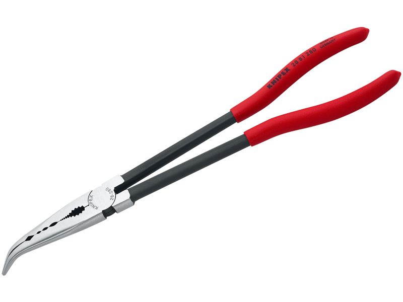 Sort atramenteret, hoved poleret, greb betrukket med kunststof. Til gribe-, justerings- og monteringsarbejde på vanskeligt tilgængelige steder takket være den slanke, meget lange form. Dybtliggende arbejdsemner kan nås optimalt med de slanke flad-runde gribespidser. Griber, holder og fører små kobberrør, skruer og kabler samt andre runde dele skånsomt og alligevel sikkert pga. fræsede noter med glat overflade. Fortandet brænderhul til at gribe runde dele. Særligt velegnet til arbejdet inden for automobilbranchen (f.eks. i motorrummet), ved montering og inden for maskinbygning. Slankt og alligevel solidt værktøj. Smedet af special-værktøjsstål, hærdet i olie.