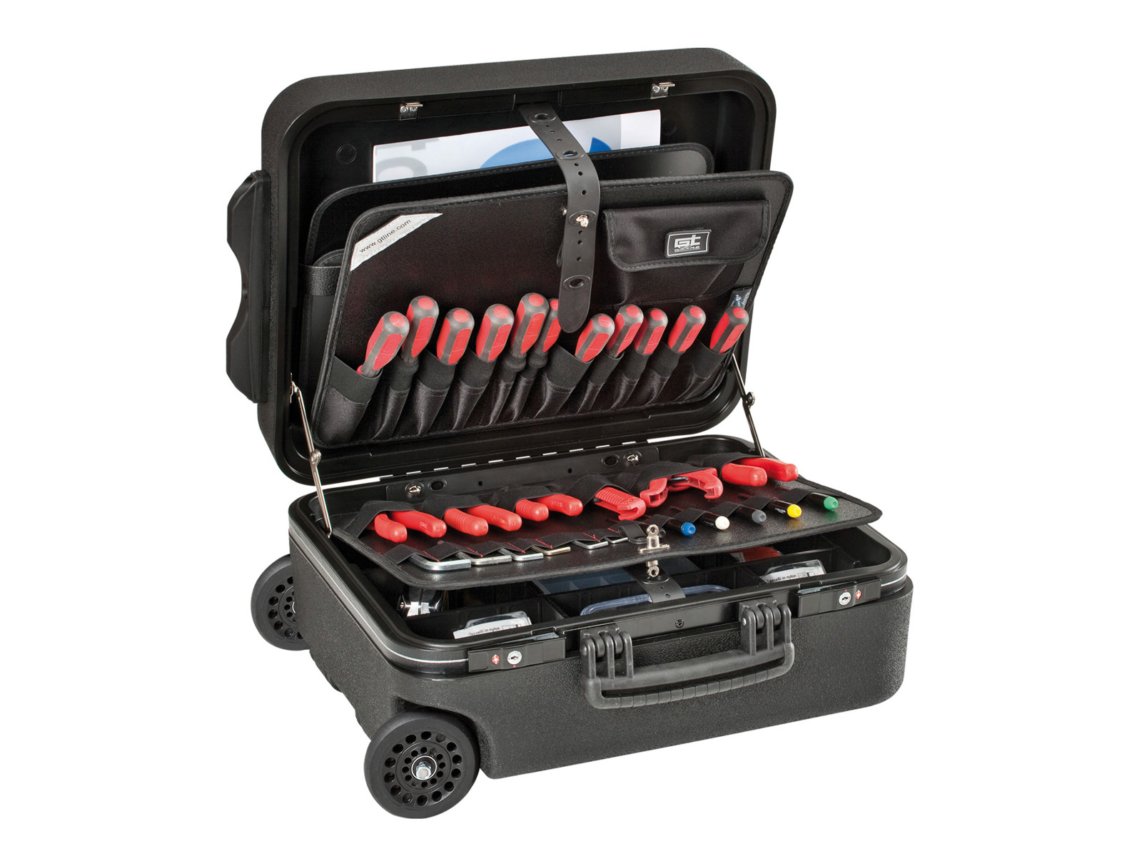 Værktøjsvogn lavet udelukkende af HDPE polyethylen, et ægte skjold mod utilsigtede stød. Kuffert med høj kapacitet, ideel til flyrejsende ingeniører, der bærer både værktøj, reservedele og komponenter.