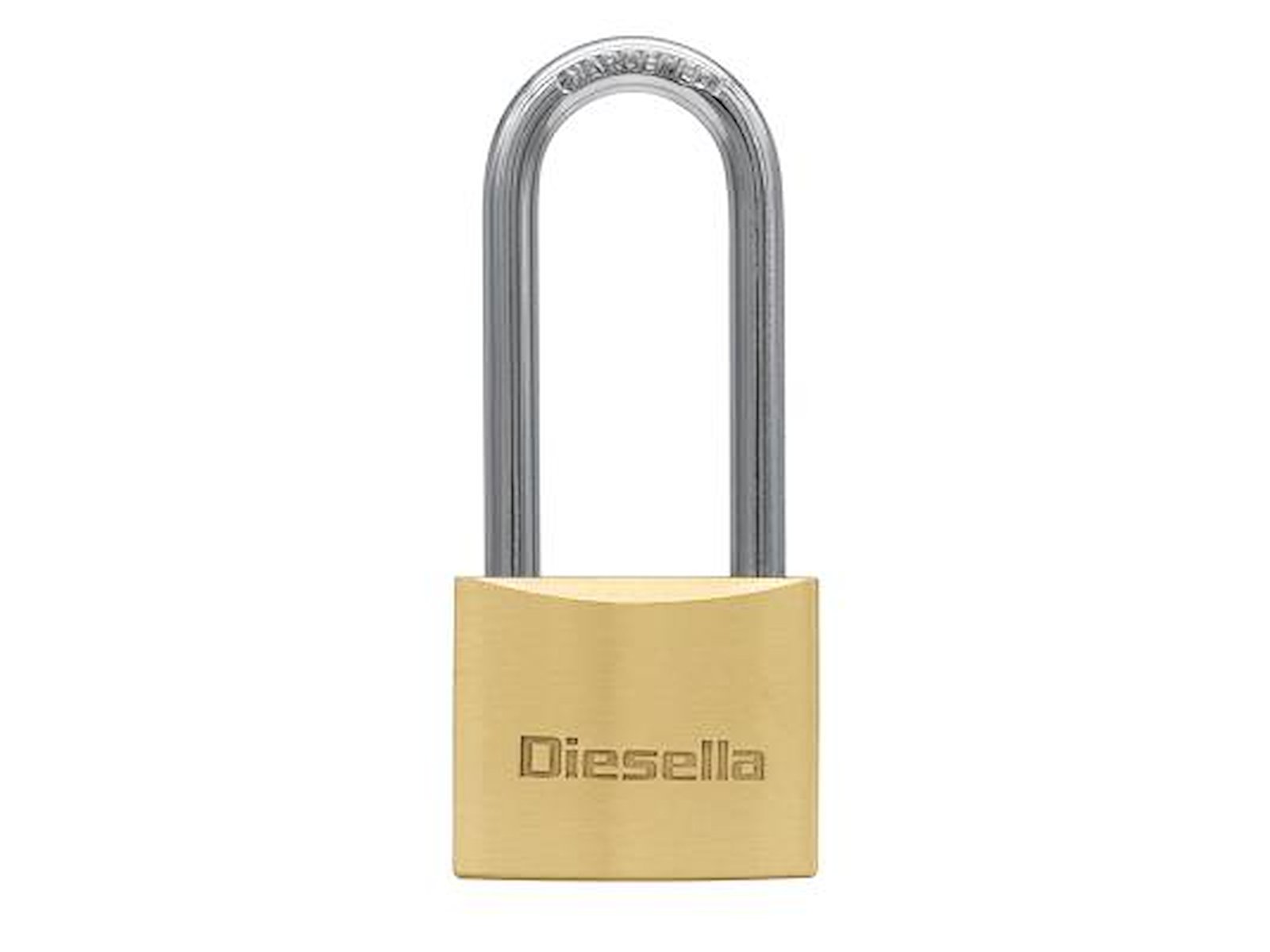 DIESELLA HÆNGELÅS LARGE 40MM MESSING M/FORLÆNGET BØJLE