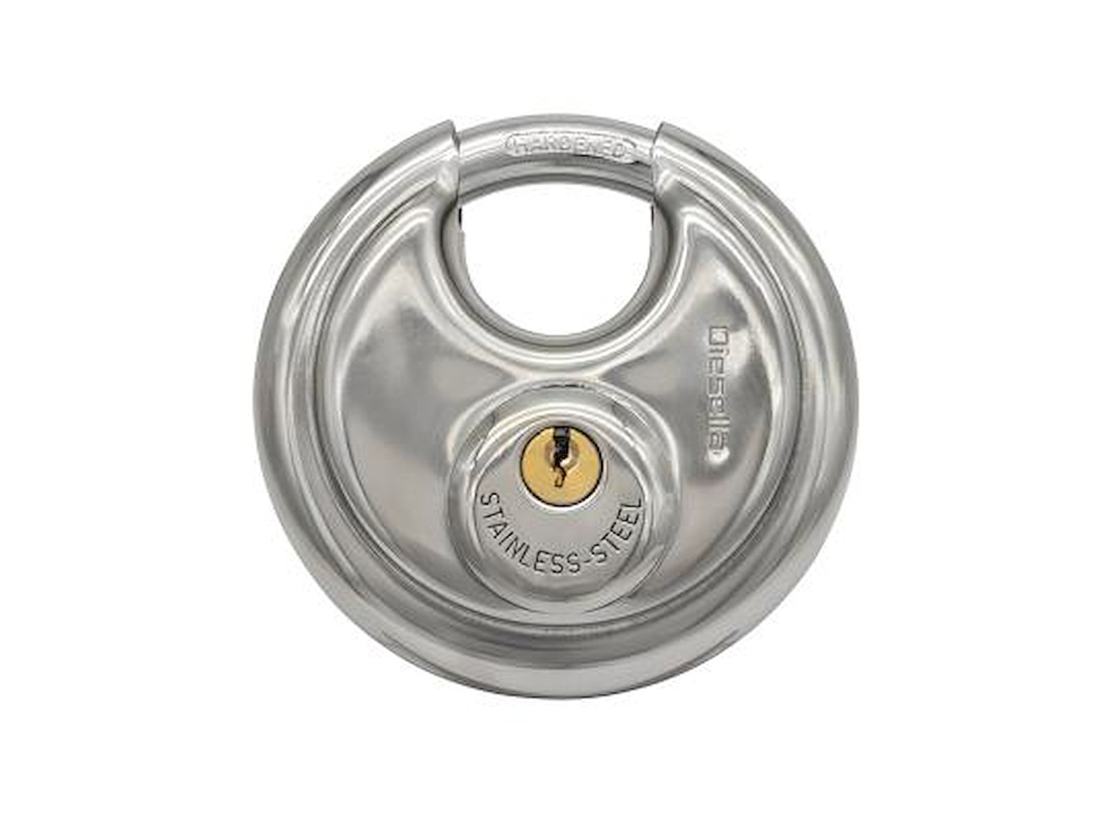 Stærk Diskus hængelås velegnet til mange aflåsningsformål. Forsynet med stålbøjle, hus i rustfrit stål og cylinder i messing. Leveres inkl. 3 stk. nøgler. Fås i flere varianter.
