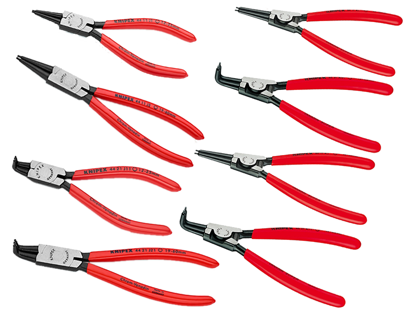 KNIPEX 00 20 04 V01 LÅSERINGSTANGSÆT INDV. /UDV. LIGE/BUET, I ALT 8 STK