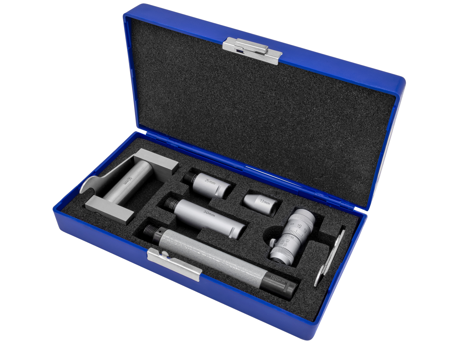 Mikrometer til indvendig måling med udskiftelige forlængere til store måleområder op til 250 mm. Forlængere er udført i rørdesign med hårdmetalbelagte måleoverflader.