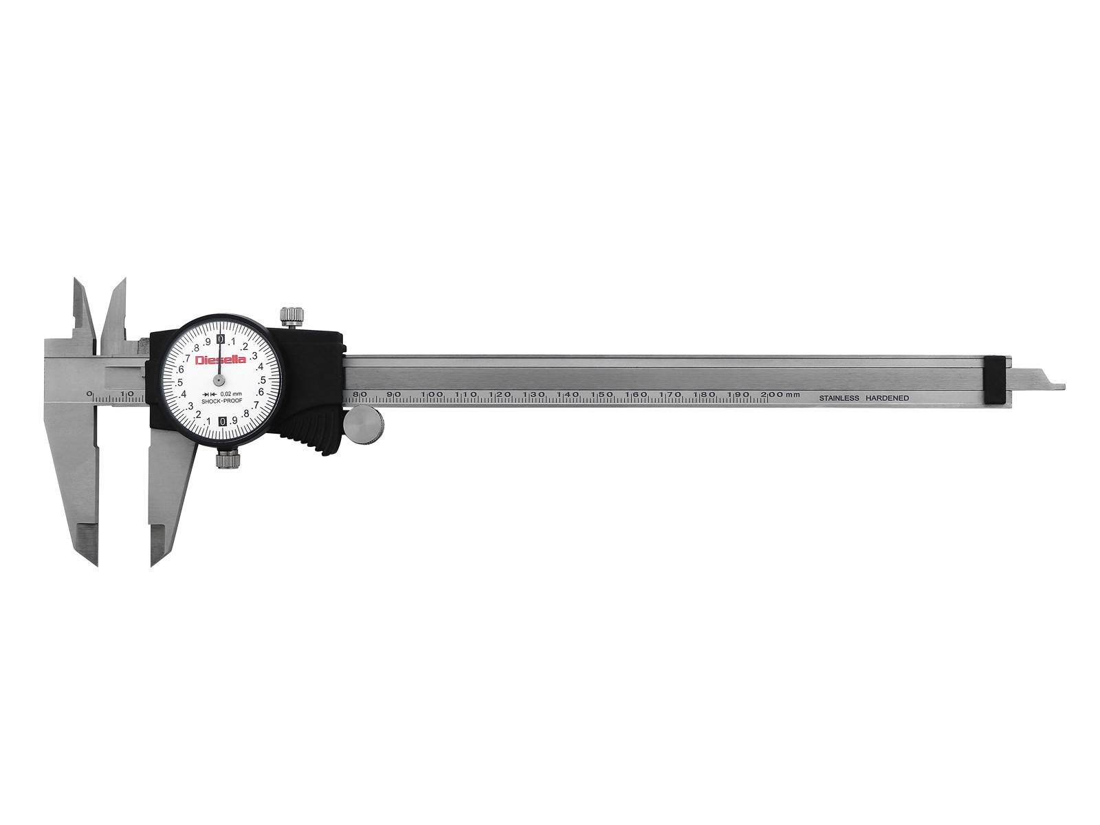 • Solidt skydelære med hvidt præcisionsur, drejelig urskive og skruelås. Med stødbeskyttelse og beskyttet tandstang. Måler fra 0-200 mm med måling ned til 0,02 mm og kæbelængde på 50 mm. Leveres i en robust plastkasse til opbevaring. • Drejeligt shock-proof ur med hvid skive • Med stødbeskyttelse og beskyttet tandstang • Analog model i rustfrit stål • Matforkromet målestav • Skruelås