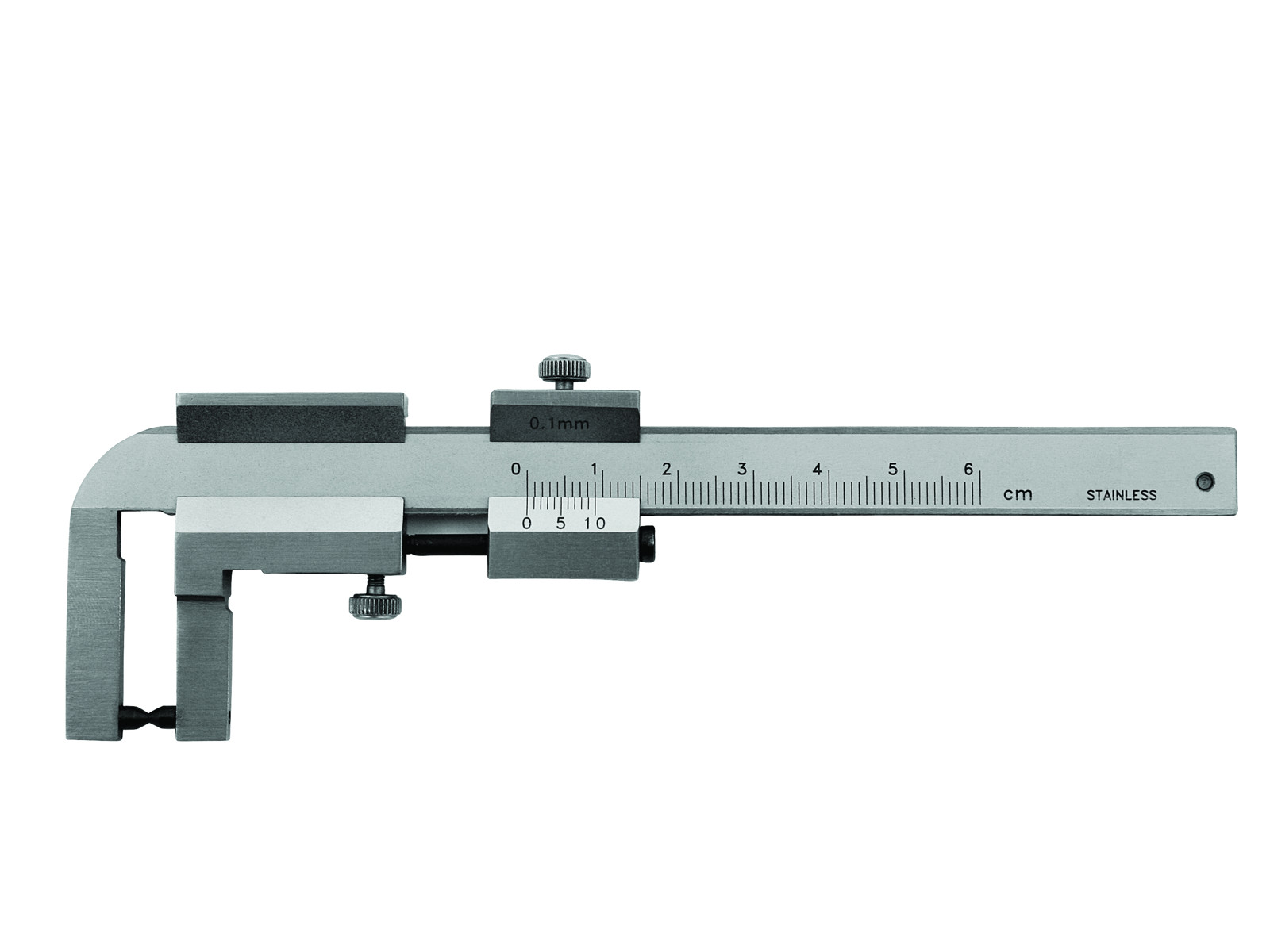 Solidt skydelære med skruelås - specielt designet til bremseskiver. Måler fra 0-60 mm med 0,1 mm i nonius og kæbelængde på 30 mm.