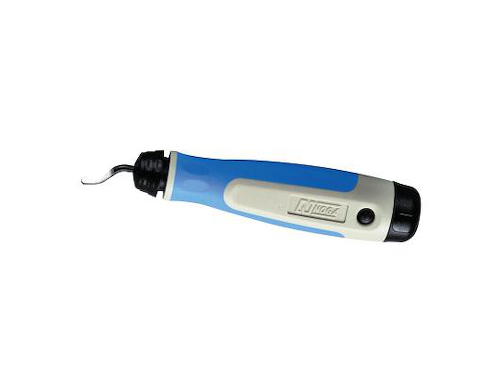 Afgratersæt med store, udskiftelige HSS-knive til forskellige afgratningsopgaver. Arbejdsrotering med højre hånd. Knivene er monteret drejeligt i blødt plasthåndtag og tilpasser sig automatisk efter emnets form. Til rør, huller, kanter m.m. Leveres med knive S10, S20 og S35.
