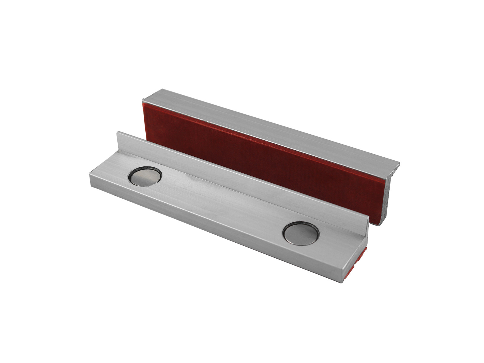 4 sæt beskyttelseskæber i hærdet aluminium som skåner og beskytter arbejdsemner mod mærker og beskadigelser. Laver skånsom opspænding af følsomme og bløde arbejdsemner. Horisontal V-profil til præcis opspænding af runde arbejdsemner. Neodym magneter sikrer en stabil opsætning på skruestikkens originale kæber.
