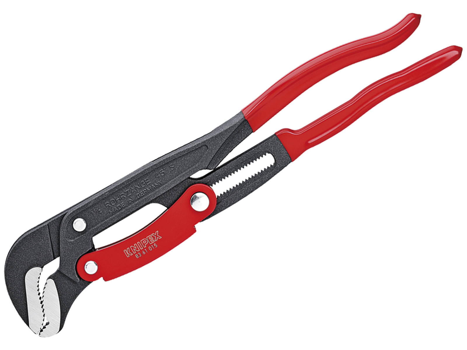 Grå pulvercoated, greb betrukket med kunststof. Tidsbesparende, præcis indstilling af åbningens vidde ved tryk på en knap direkte ved arbejdsemnet. Kraftbesparende arbejde pga. selvklemmende effekt. Ingen utilsigtet ændring af grebens indstilling. Klembeskyttelse forhindrer sammenklemningskvæstelser. Højeste belastbarhed pga. fuldstændigt forædlede greb. Høj slidstyrke pga. ekstra hærdet fortanding. Chrom-vanadium-elektrostål, smedet, oliehærdet. Fås i flere dimensioner.