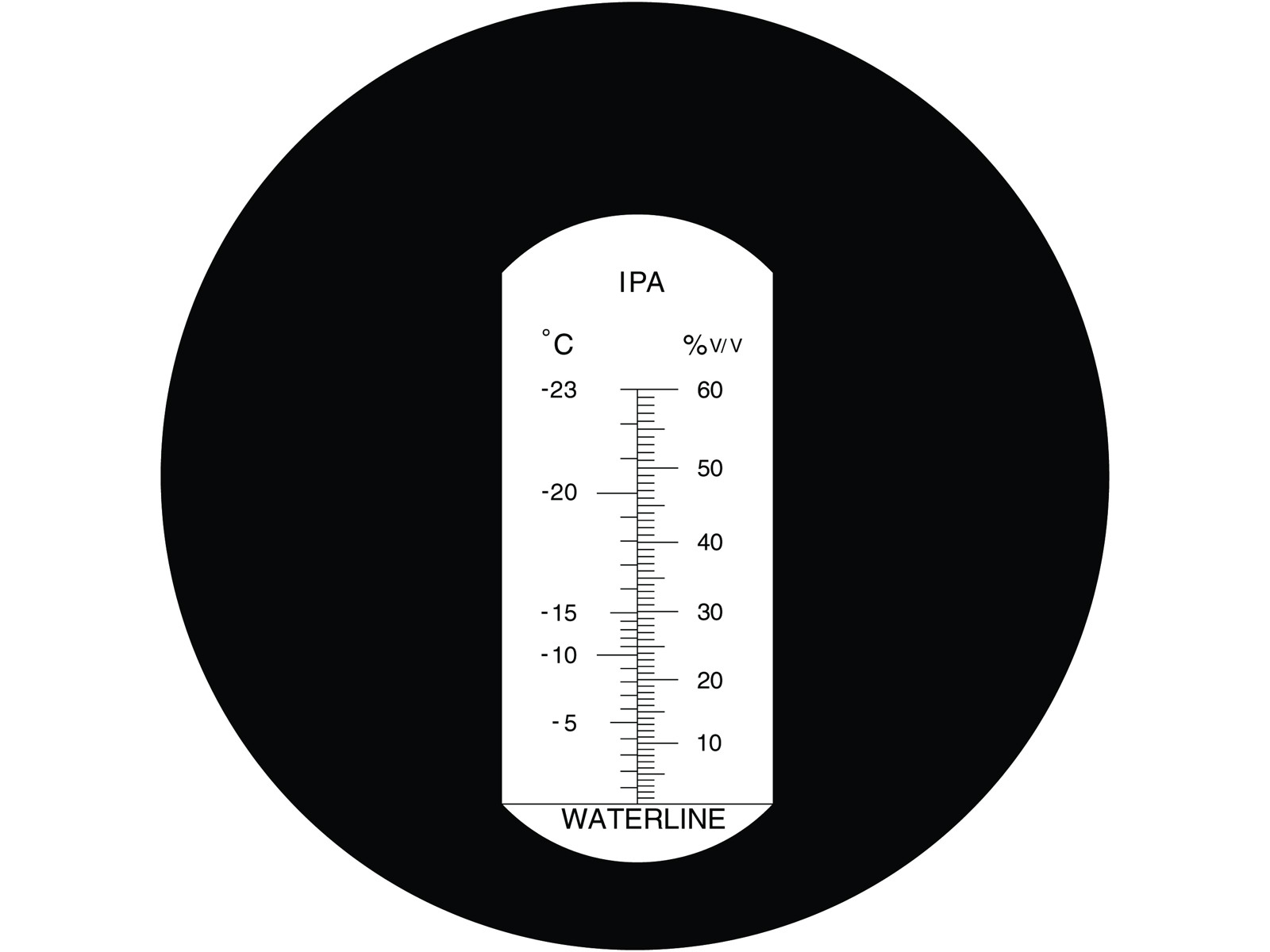Kontrollérer frostsikringspunkt/ blandingsforhold i væsker blandet med IPA-sprit. Anvendes b.la. til brug inden for opsætning og servicering af jordvarmeanlæg mv. kalibreringsværktøj og pipette medfølger. Kroppen er af kobber, hvilket gør dette refraktometer meget slidstærkt og modstandsdygtigt overfor kemisk korrosion. Dvs. at levetiden øges mange gange i forhold til almindeligt aluminium huse.
