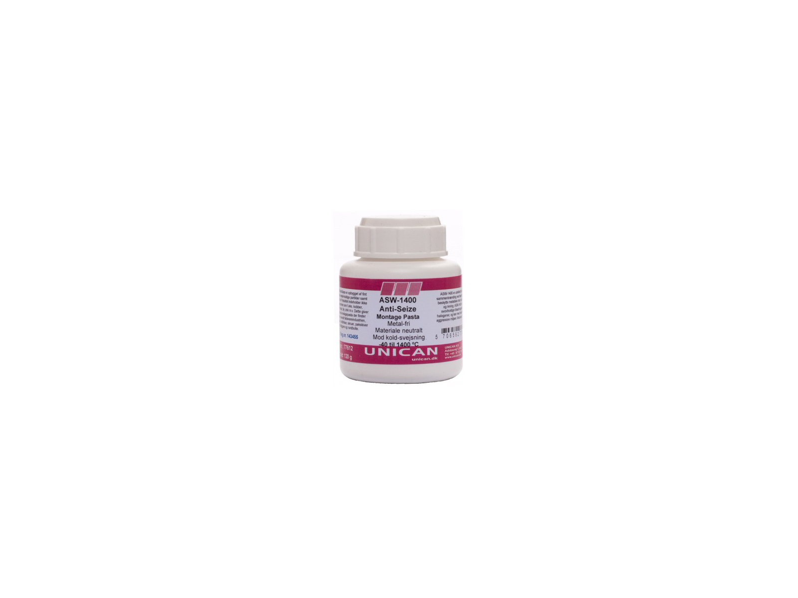 ASW-1400 Metalfri Montagepasta er opbygget af fint-formalet ikke metal holdige partikler, samt medicinsk olie. Produktet indeholder ikke metal-pigmenter som f. eks kobber, aluminium, nikkel, bly, zink m.v. Dette giver en enestående pasta, der finder anvendelse overalt i industrien på bolte, møtrikker og skruer, prespasningssamlinger og pak-skiver samt udliggere og rund-bolte. ASW-1400 er udviklet til at modstå sammenbrænding ved høje tryk og til at beskytte metaldele imod rust, korrosion og rivning. Produktet forholder sig materiale-neutralt ved bearbejdning af højtlegerede stål-typer og andre metal-materialer. ASW-1400 får dele til at holde længere samt nedsætter slitagen. Dette betyder reducering af udskiftningsomkostninger og lettere reparationsarbejde selv efter påvirkning af meget høje temperaturer. ASW-1400 er fri for svovlholdige tilsætningsstoffer og halogener og kan med fordel benyttes i aggressive miljøer. Produktet er NSF-H1 godkendt og kan derfor også anvendes bredt indenfor fødevareindustrien.