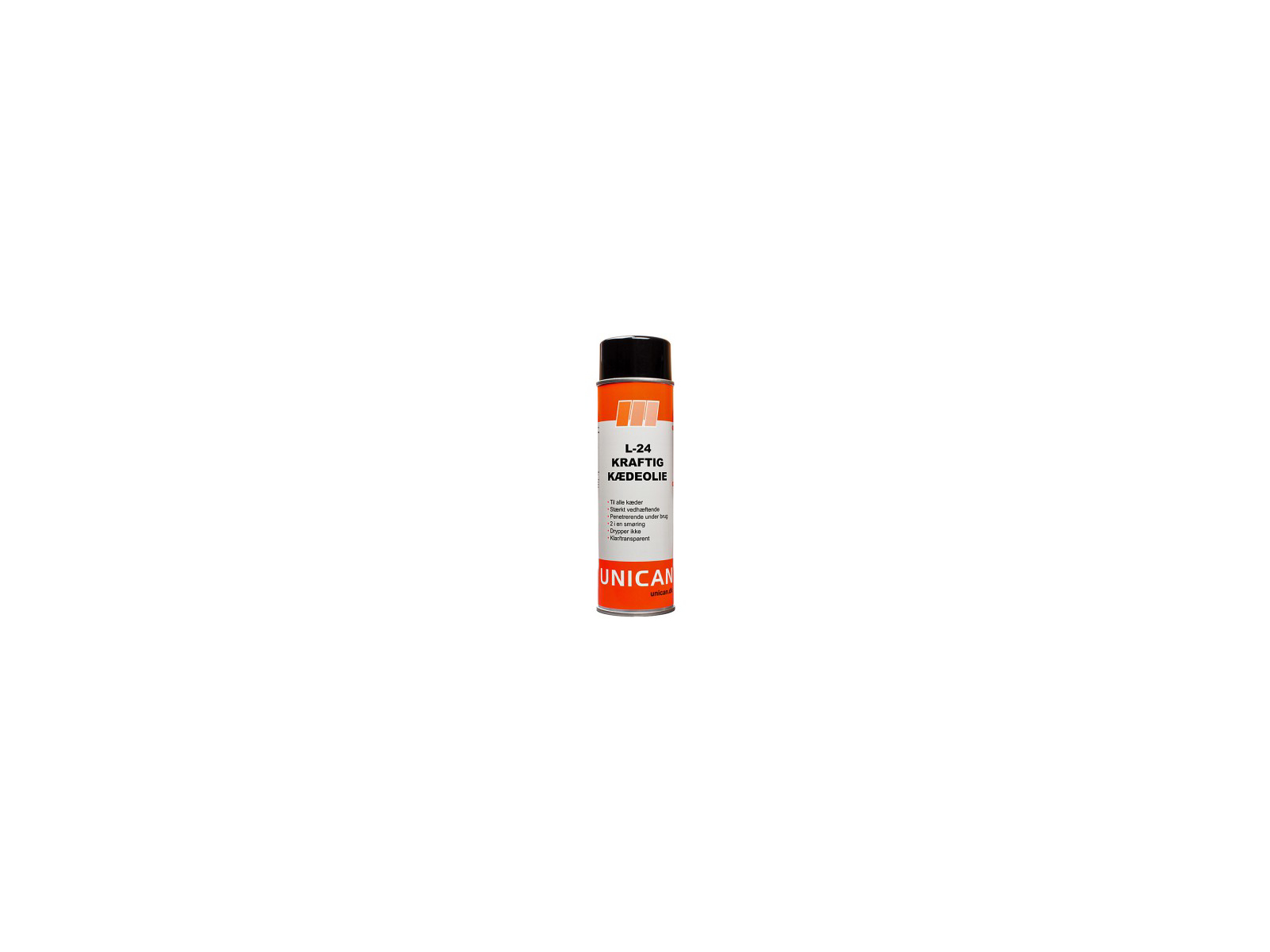 Tilsat kraftig korrosionsbeskyttende additivpakke. L-24 Kraftig Kædeolie er en yderst vedhæftende klar olie til smøring af kæder indenfor en lang række forskellige industrier. Produktet er yderst resistent overfor vandafvaskning og kan anvendes i både tørre og våde miljøer. L-24 Kraftig Kædeolie er anvendelig til smøring af hængsler, tandhjul, gear, snegle, conveyors m.m. Den kraftige oliefilm giver ekstra lange smøreintervaller og beskytter samtidig mod rust og tæring. Den store vedhæftningsevne gør desuden L-24 Kraftig Kædeolie i stand til effektivt at løse smøreopgaver med hurtigløbende kæder uden risiko for, at olien bliver slynget af. Brug L-24 alle steder, hvor en stærk ikke afsmittende smøring ønskes. L-24 Kraftig Kædeolie kan anvendes indenfor et bredt temperaturområde fra -30°C til +200°C.