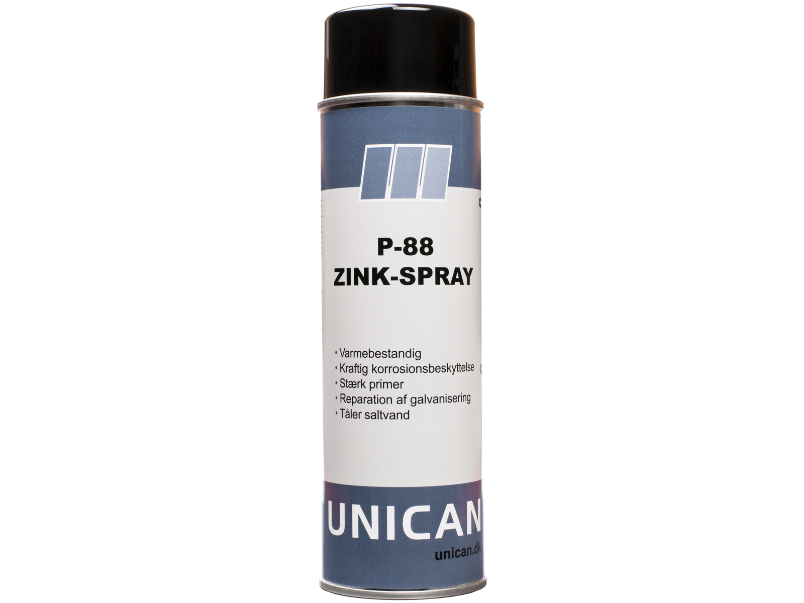 P-88 Zink-Spray er et produkt, som kan sammenlignes med varmeforzinkning. Produktet bruges til overfladebehandling af stål, svejse-fuger, ridser mv. P-88 Zink Spray kan også anvendes som en særdeles effektiv korrosionsbeskytter eller som en kraftig grunder. Produktet indeholder over 93% rent zink i tør-filmen. Produktet er støvtørt efter 15-30 min og er i løbet af kort tid overmalbar. Ophærdet efter kun 12 timer. P-88 Zink Spray er varmebestandig helt op til 500°C og hæfter også på rustne overflader. Dog anbefales det, at man inden brug sikrer sig, at overfladen er ren og tør, derved opnås det bedste resultat. Fjern evt. fedt, voks og andet snavs med C-1000 Power Cleaner. Påfør P-88 Zink spray udendørs eller i lokaler med tilstrækkelige udluftningsmuligheder. Produktet bør for bedste resultat påføres i en temperatur på mellem 15°C-25°C og en luftfugtighed på ikke under 60%. Ryst dåsen omhyggeligt. Gentag evt. påføringen 2-3 gange for optimal beskyttelse. Efter endt brug vendes dåsen på hovedet og der sprayes i nogle få sekunder, derved rengøres dysen og man undgår tilstopning.