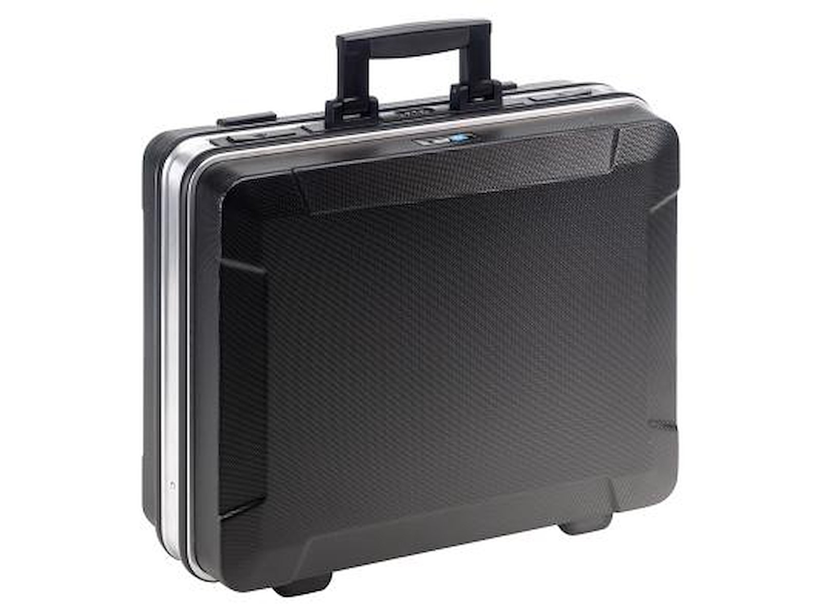 Base værktøjskuffert med værktøjsmoduler. Kufferten er fremstillet i slagfast ABS-plast med kraftig aluminiumsramme og gummilister. Nyt og moderne design med ergonomisk håndtag og A4-dokumentmappe i låget. Base er udstyret med to nøglelåse og en kodelås. Volume 26 ltr. Maks. belastning 25 kg. Leveres uden værktøj.