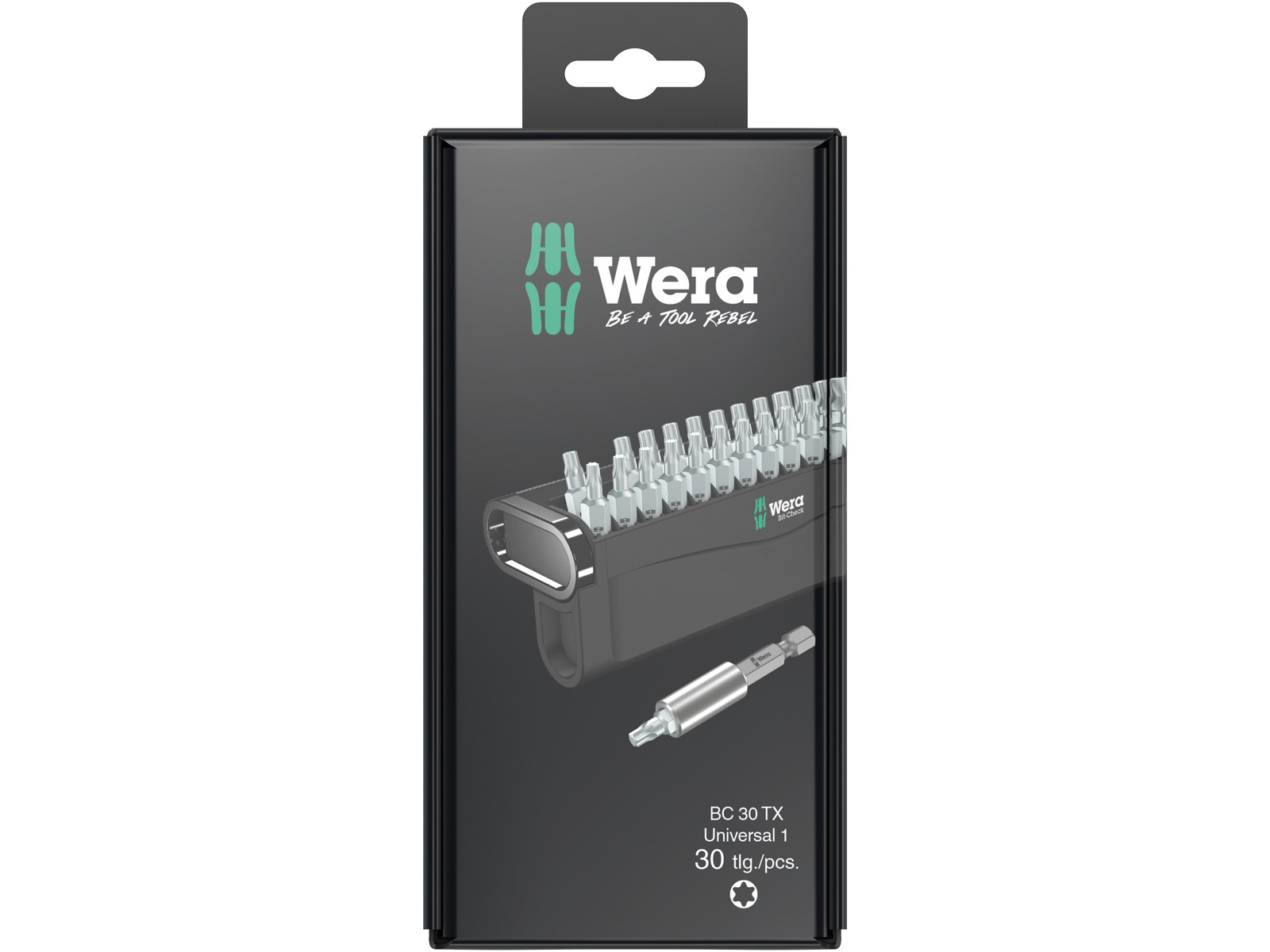30 dele. Hårde og slidstærke Wera bits til universelt brug. 1 universalholder 899/4/1 K til isætning i skruemaskine eller til brug i borepatronen på en elektronisk boremaskine. Inklusiv hårde og slidstærke TORX® bits, til universelt brug.