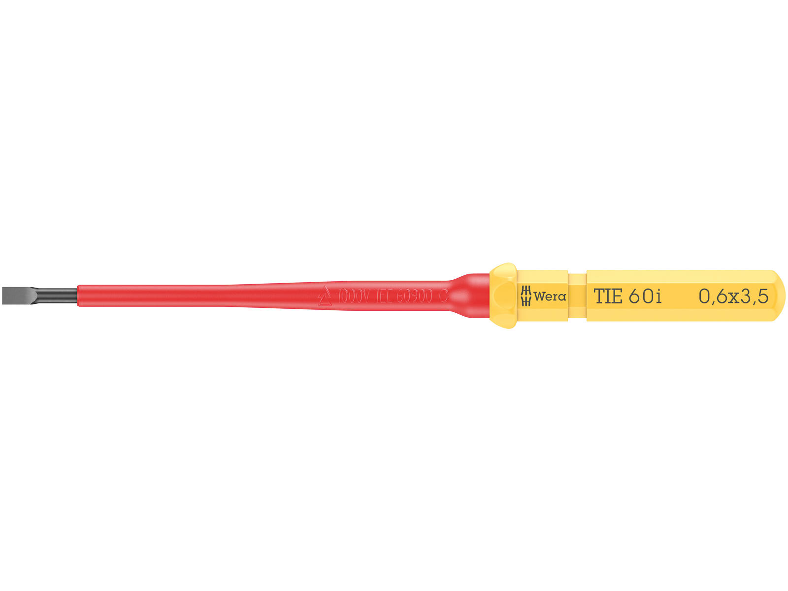 VDE klinge til Kraftform Kompakt greb-/udskiftningsklingesystem til lynhurtig udskiftning af klinge uden specialværktøj. Enkeltvis testet værktøj iflg. IEC 60900. Enkeltvis test ved 10.000 V mhp. sikkert arbejde ved den godkendte spænding på 1.000 V.