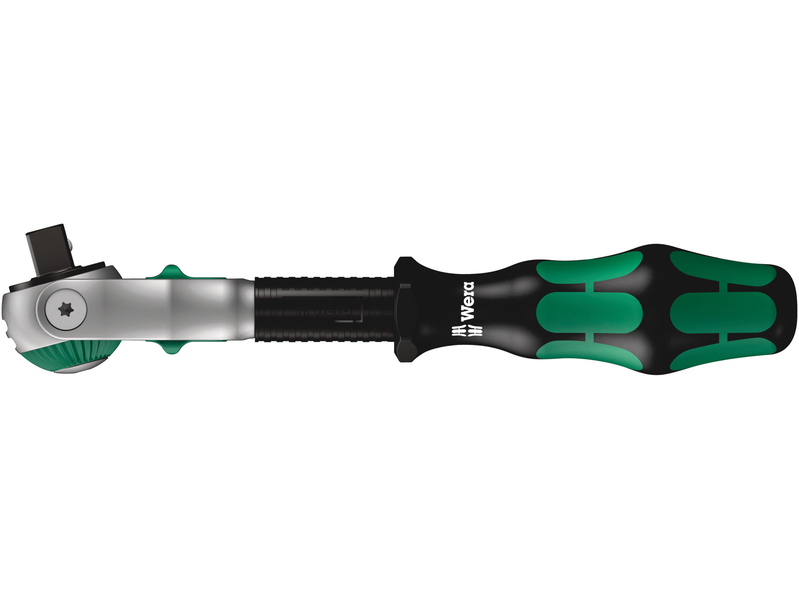 Zyklop-skralde med 3/8"-tilslutning. På grund af finfortandingen med 72 tænder muliggøres en lille returvinkel på 5°. Skraldehovedet kan drejes frit og kan låses i enhver stilling med de på begge sider placerede skydeknapper. Problemløst arbejde med stort frirum til hånden er muligt selv i meget snævre og svært tilgængelige montagesituationer. Den definerede fiksering ved 0°, 15° og 90° til venstre og højre garanterer sikkert arbejde uden skraldethovedet rutsjer. I 0°-stillingen kan skralden med adapter og bit benyttes som en traditionel skruetrækker. Svingmassekonstruktionen sørger for at accelerere skrueprocessen. Kraftform-grebets rotationssymmetriske opbygning og friløbsbøsningen understøtter lynhurtig snurren rundt. Via Kraftform-grebets fremragende hånden tilpassede form undgås kvæstelser af hånden såsom vabler og hård hud. De til grebet anvendte hårde materialer garanterer hurtig tagen fat uden risiko for at huden "klistrer fast" på grebet. De blødere, "skridsikre" zoner muliggør friktionfri overførsel af store kræfter. Til 3/8"-firkant-topnøgleindsatser samt 3/8"-forbindelsesled med firkantstilslutning, med kuglelås.