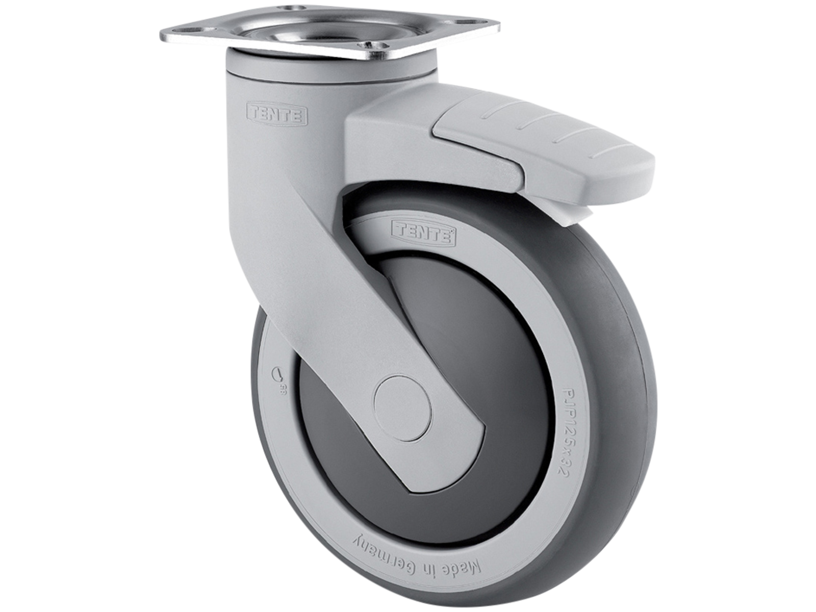 TENTE DREJEHJUL +BREMSE 5377 PJP 100 P50 TIL PLADEMONTERING GAFFEL I KUNSTSTOF