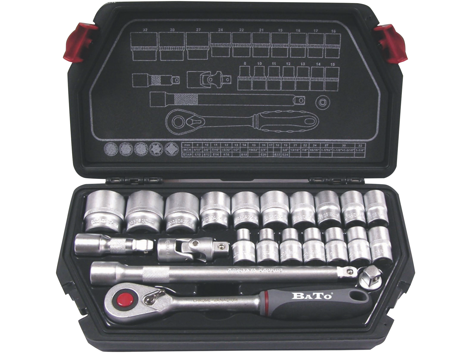 BATO 1132 SPLINETOPNØGLESÆT 1/2" 22 DELE - 8-32MM