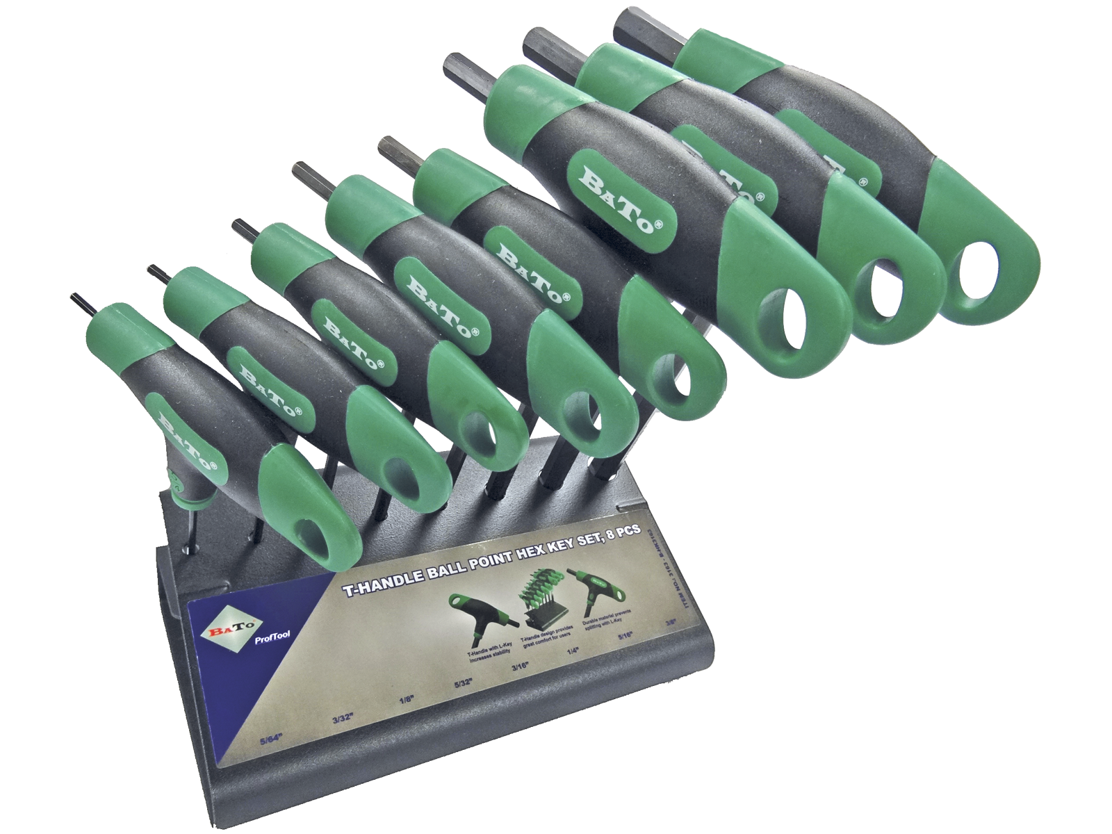 BATO 3163 T-GREB UNBRAKONØGLESÆT M/KUGLE 8 DELE - 5/64"-3/8" GRØN