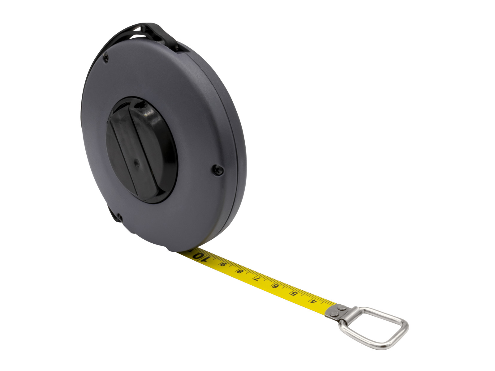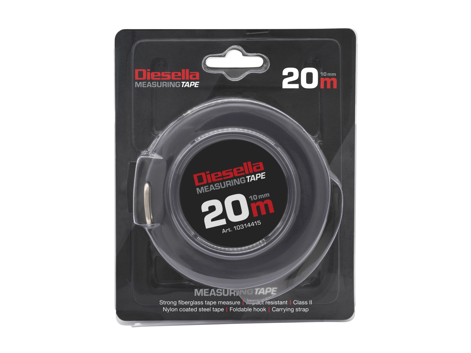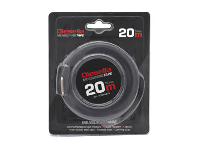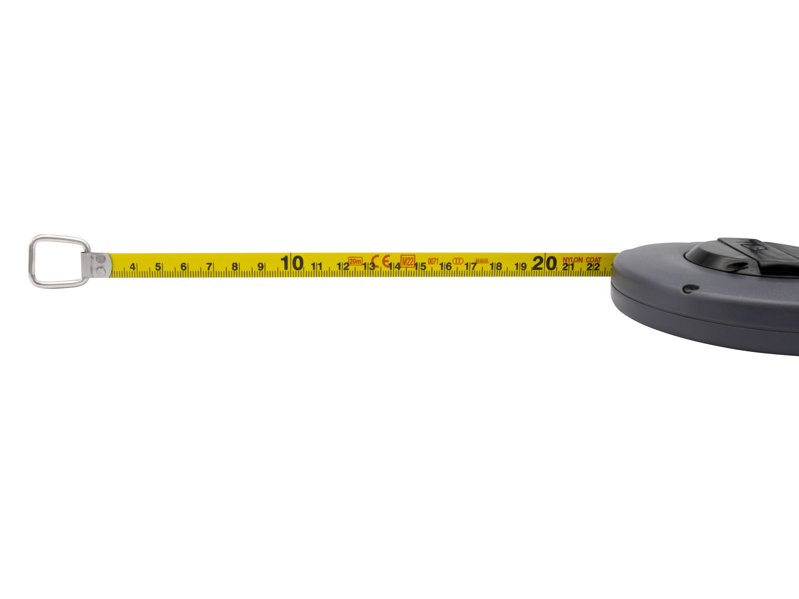 Strong steel tape measure with nylon coated tape, which makes the tape measure extra durable. With yellow tape measure, black mm-scale and red numbers for every 1 meter.