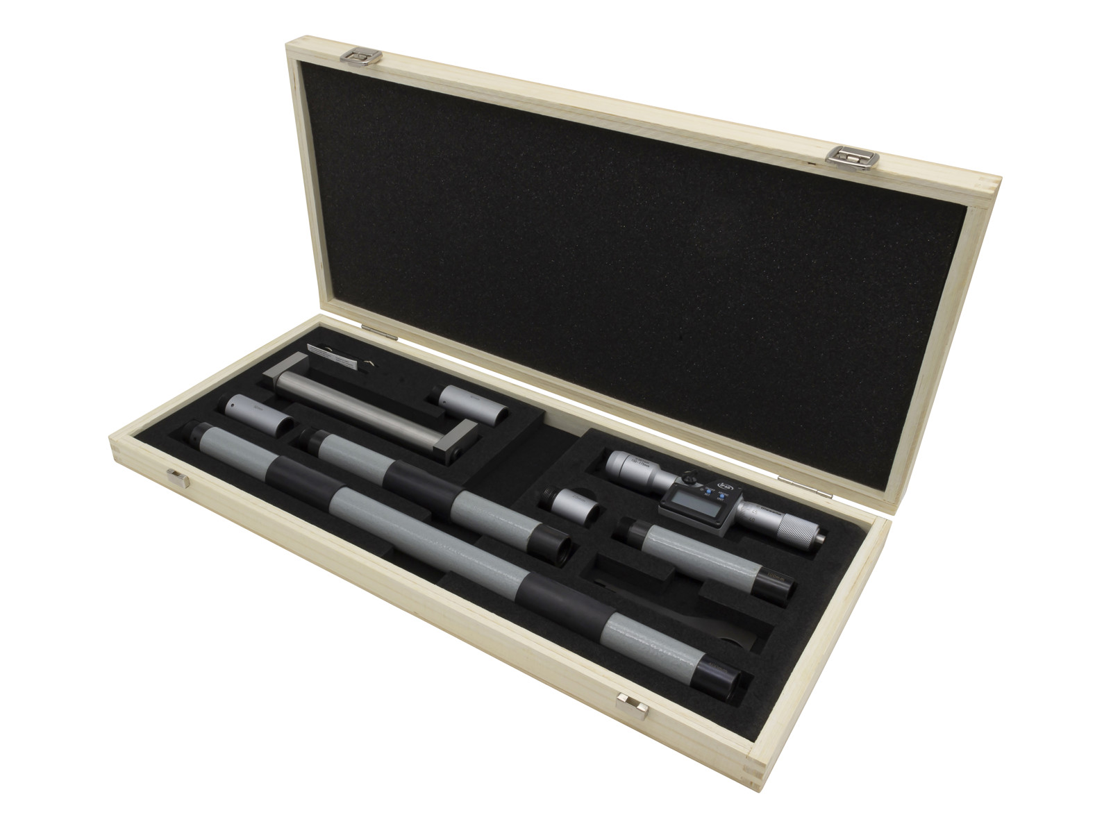 Digital Micrometer for internal measurement with replaceable extensions for large measuring ranges up to 175 mm. Extensions are made in pipe design with carbide-coated measuring surfaces.