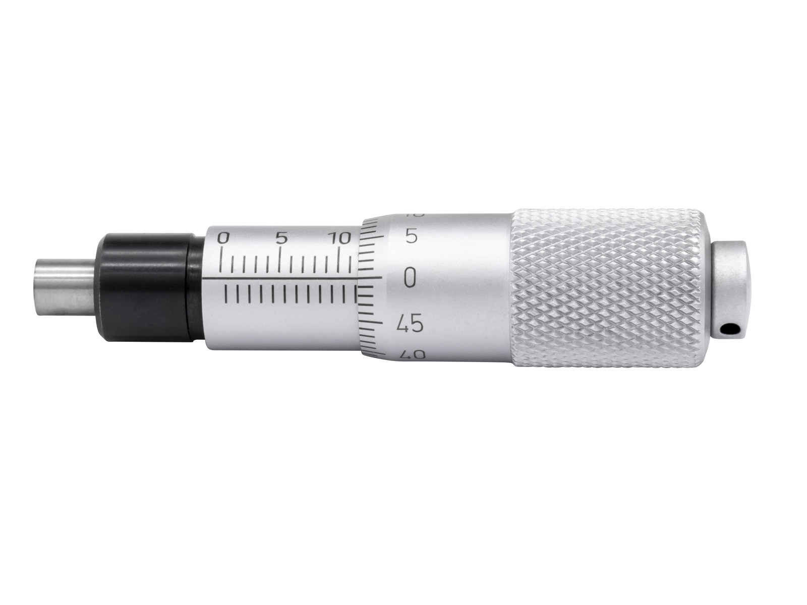 Built-in micrometer head with hardened spindle. For installation in machines, inspection fixtures, measuring instruments etc. as an adjustable comparator stand stop.
