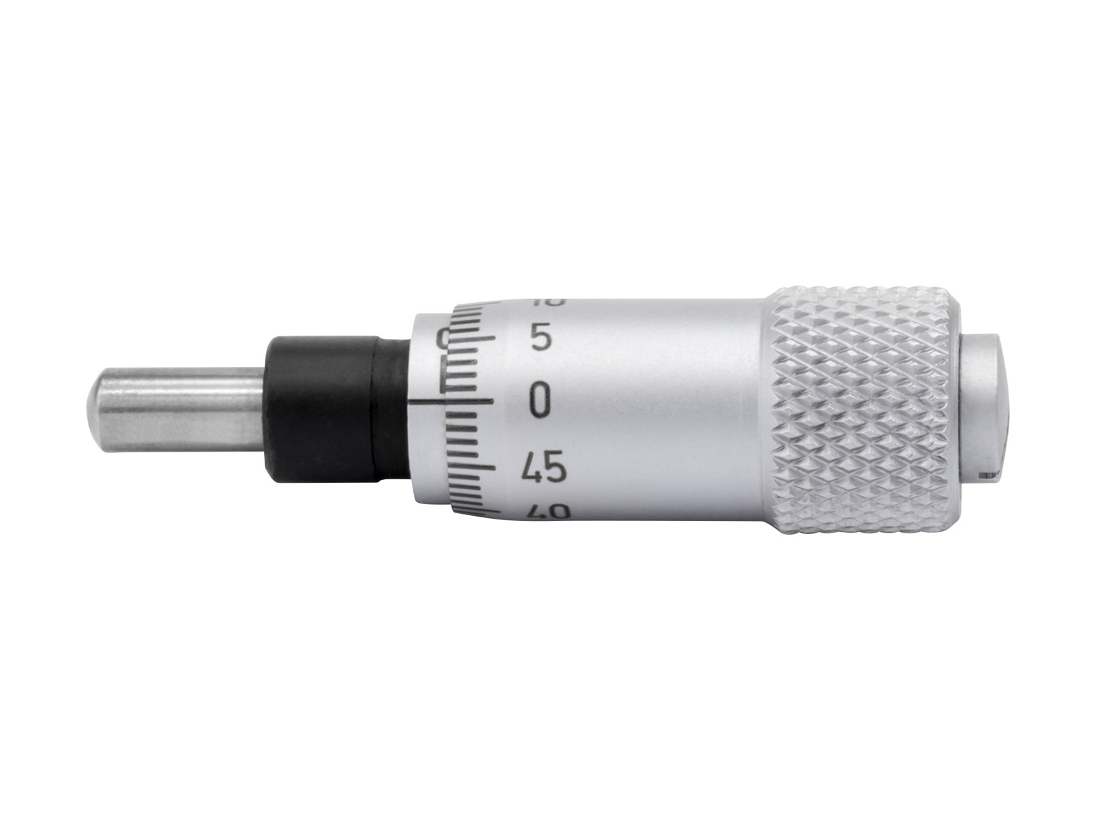 Built-in micrometer head with hardened spindle. For installation in machines, inspection fixtures, measuring instruments etc. as an adjustable comparator stand stop. Delivered in a small plastic box. • DIN 863
