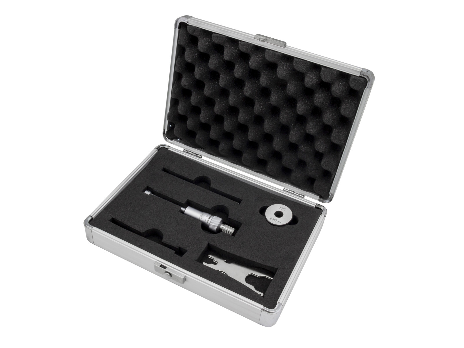 • For through holes and bottom holes. With matt chrome-plated reading parts, carbide measuring surfaces and friction device that provides a constant measuring force and self-centers the measuring unit. Delivered in aluminum box. • Carbide measuring surfaces • Constant measuring force • Incl. extension 100 mm • Incl. control ring • For through holes and bottom holes