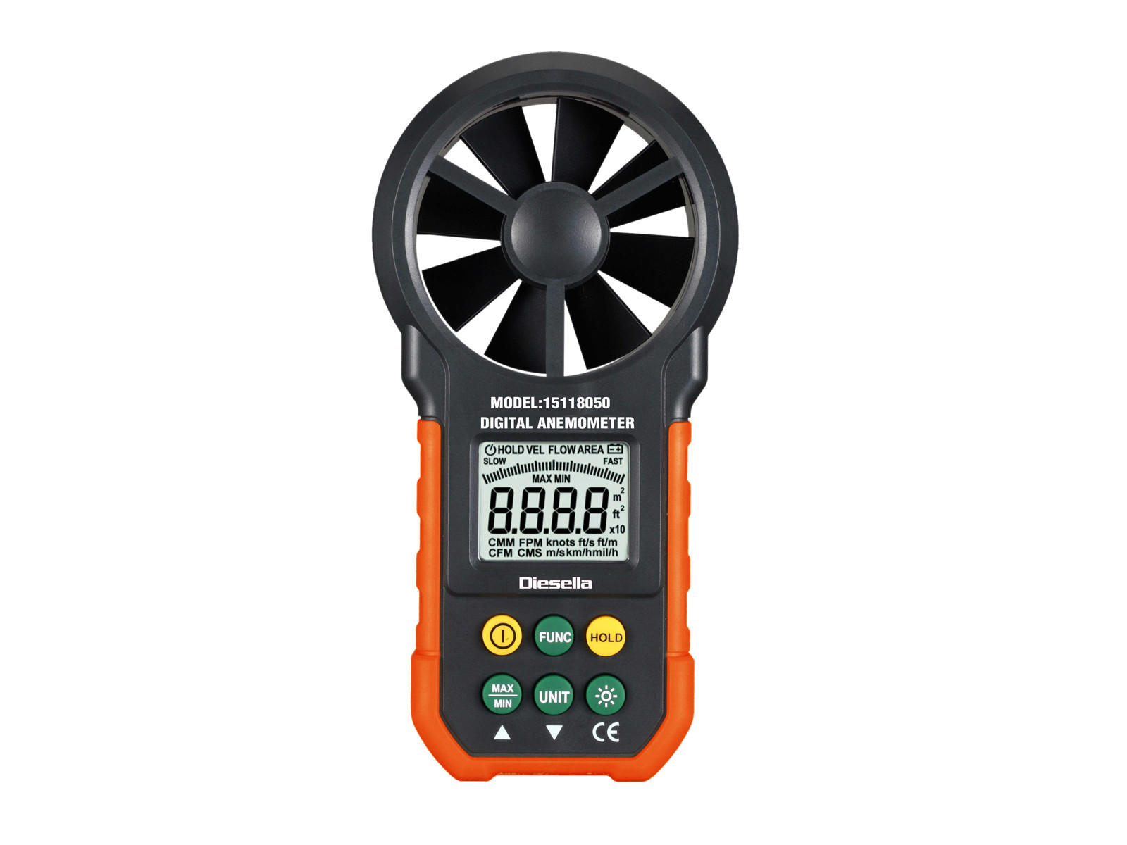 Digital anemometer for measuring wind speed and air volume. Large backlit LCD screen with multi-unit switching functions. A good measuring instrument with a large backlit LCD display with many functions. Can be used as handheld and/or fixed measurements.