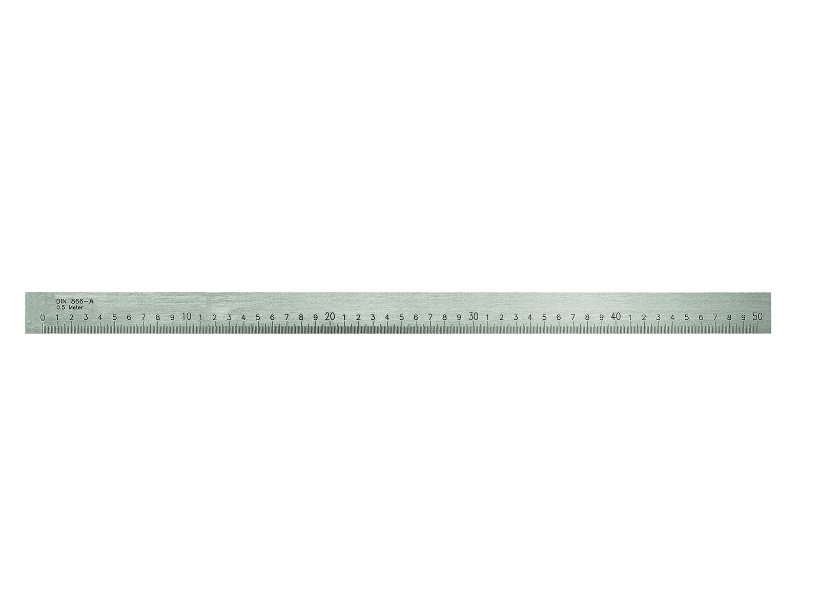 Measuring rod / steel straightening rail made in accordance with DIN 866 Form A made in normal. tool steel with engraved millimeter scale. The left and right sides have a protective end (= The first and last 10 mm have no millimeter scale). Can also be used as a ruler as the vertical edge is finely polished.
