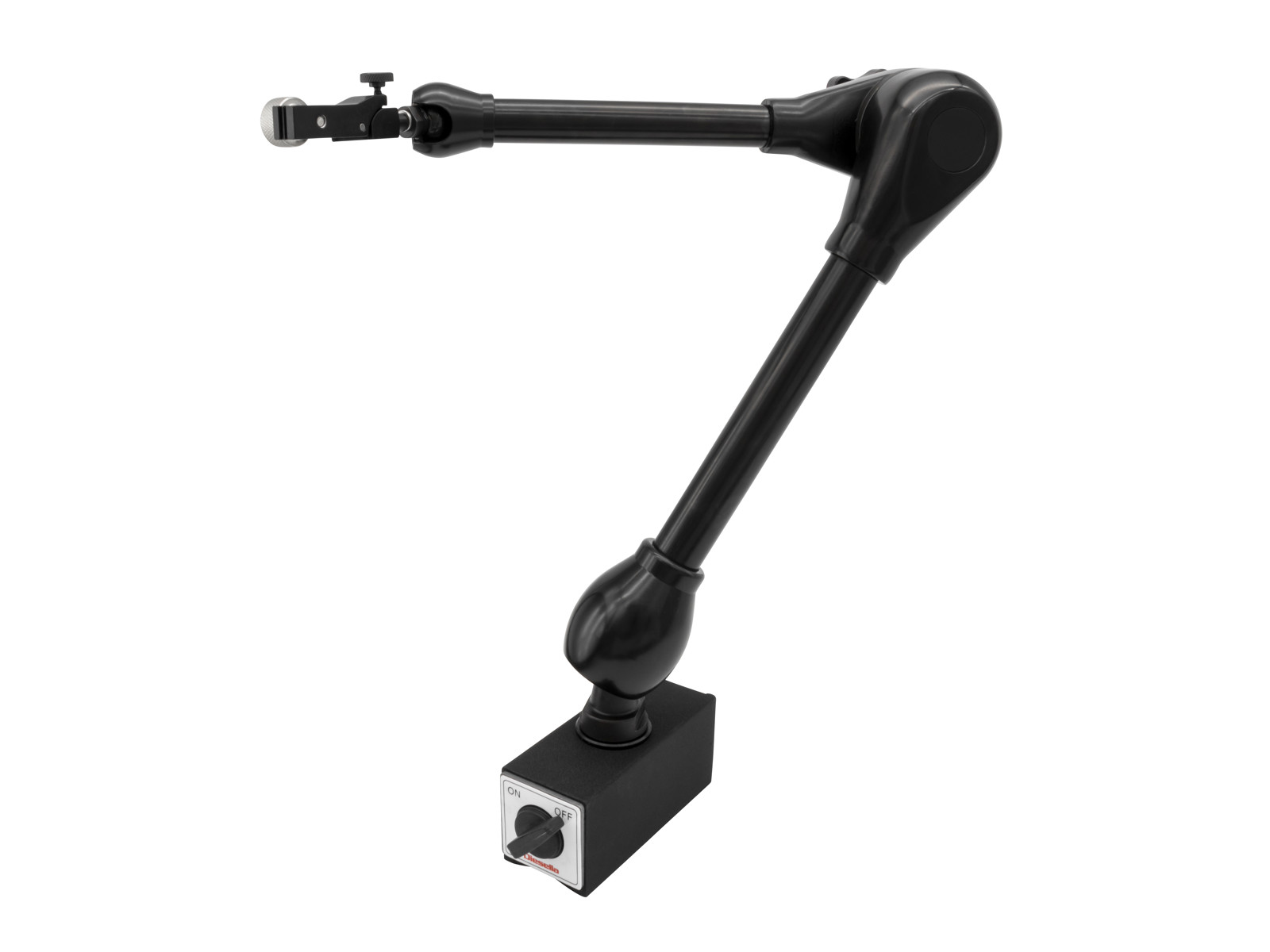 Mechanical magnetic stand with mechanical locking. for dial indicator ON / OFF switch on the base, so you can easily controle the holding force. • Clamping for Ø8 mm • With dovetail mount • Fine adjustment on the watch holder.