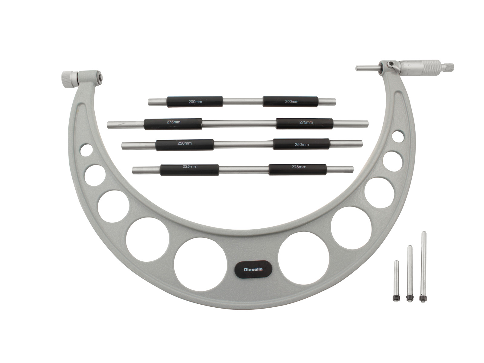 Matt chrome-plated and with measuring surfaces in tungsten carbide and lacquered and forged frame. Control dimensions included - the smallest is 25 mm.