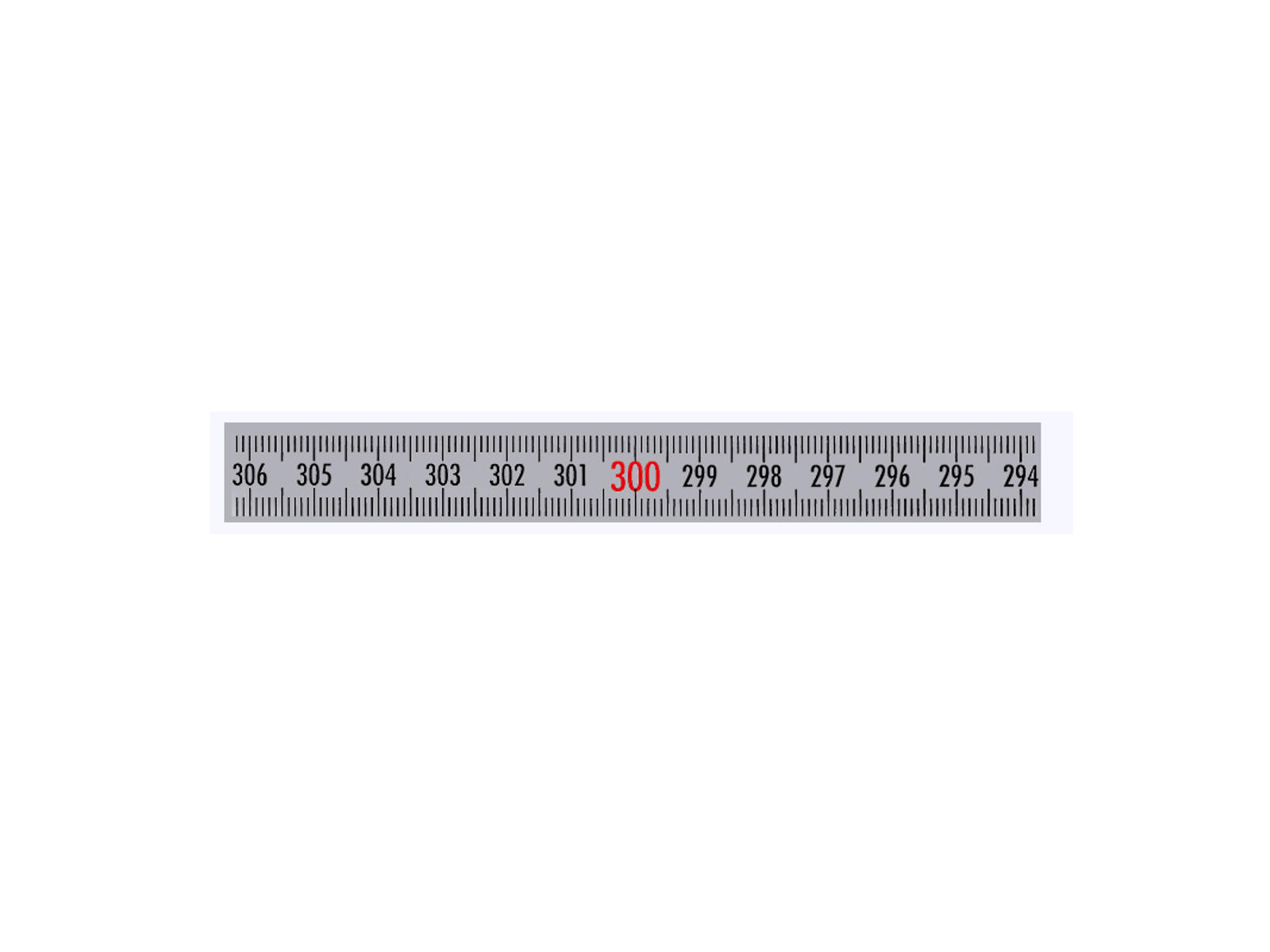 Self Adhesive Pit Measuring Tape 10M x 13 mm WHITE. Double-sided adhesive. Graduation from right to left with continuous grading of mm and cm.