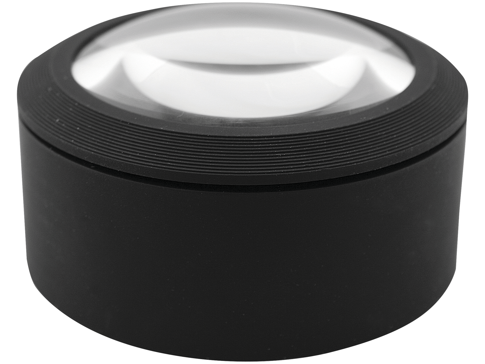 Compact magnifier stand with 3xLED light. With glass Ø70 that magnifies 3.5X. Made of ABS plastic and glass lens.