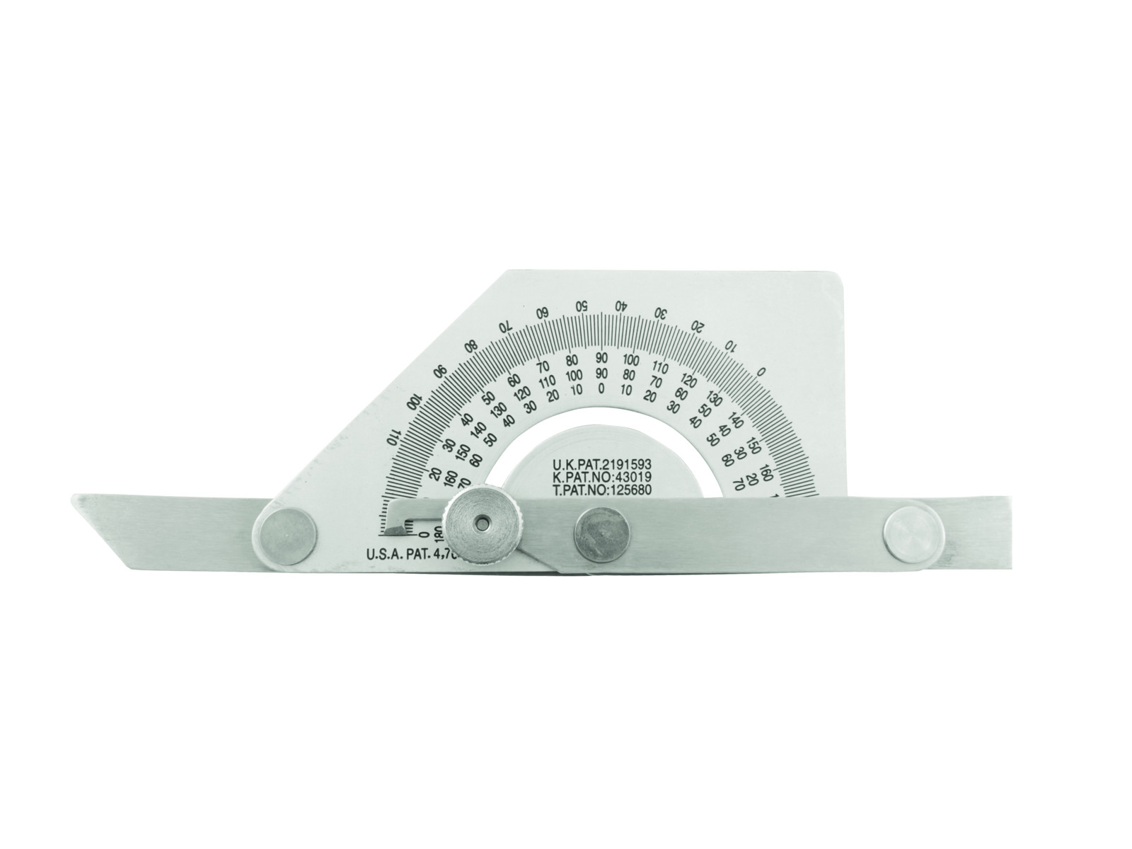 Used for in- and outside measurement of angles and slopes. Made in stainless steel and with adjustable rail. • Adjustable • Stainless steel • For measuring angles and slopes • Used for both in- and outside measurement