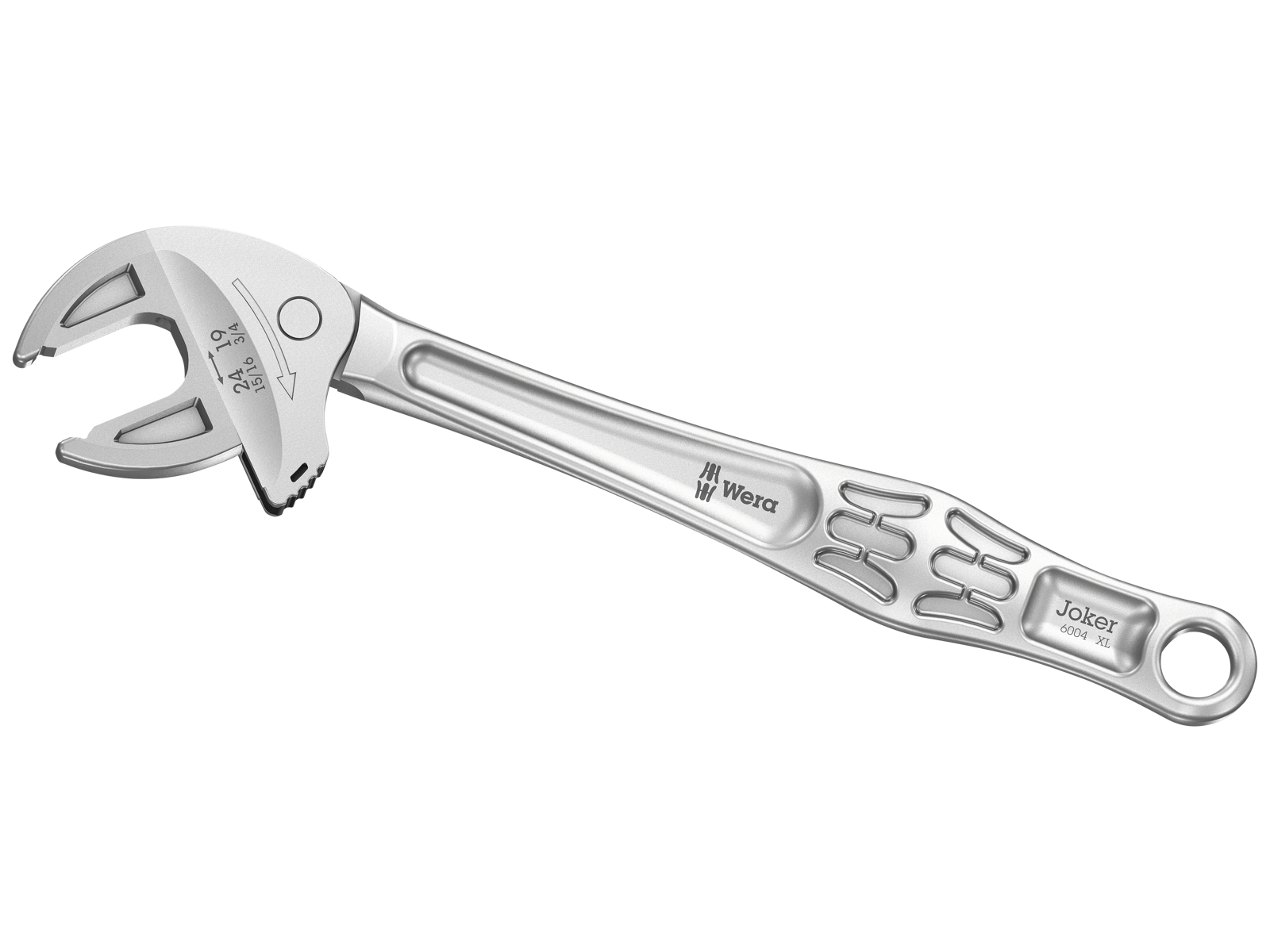 • Many users wish to have a universal screwdriving tool with the widest possible range of applications. It should be a single tool for multiple metric and imperial dimensions. It should automatically adjust to the different screw sizes. It should be safe to grab without damaging anything and should allow for high working speeds. With its continuous and parallel jaws the Joker 6004 replaces several single spanner sizes. The required size is automatically and continuously set when attaching the tool to the hexagon bolt or screw. The integrated lever mechanism securely clamps the hexagon screw or bolt between the jaws, which significantly reduces the risk of slippage or damage. The ratchet feature ensures fast and consistent screwdriving without removing the tool. By using the corner-width rectangular prisms, a back-pivoting angle of only 30° can be achieved. The single-arm design, in conjunction with the ratchet feature and the corner-width prism, makes it possible to work even in confined spaces. The adjustable Joker 6004 is the universal screwdriving tool. Self-setting. Gripping. Spanning.