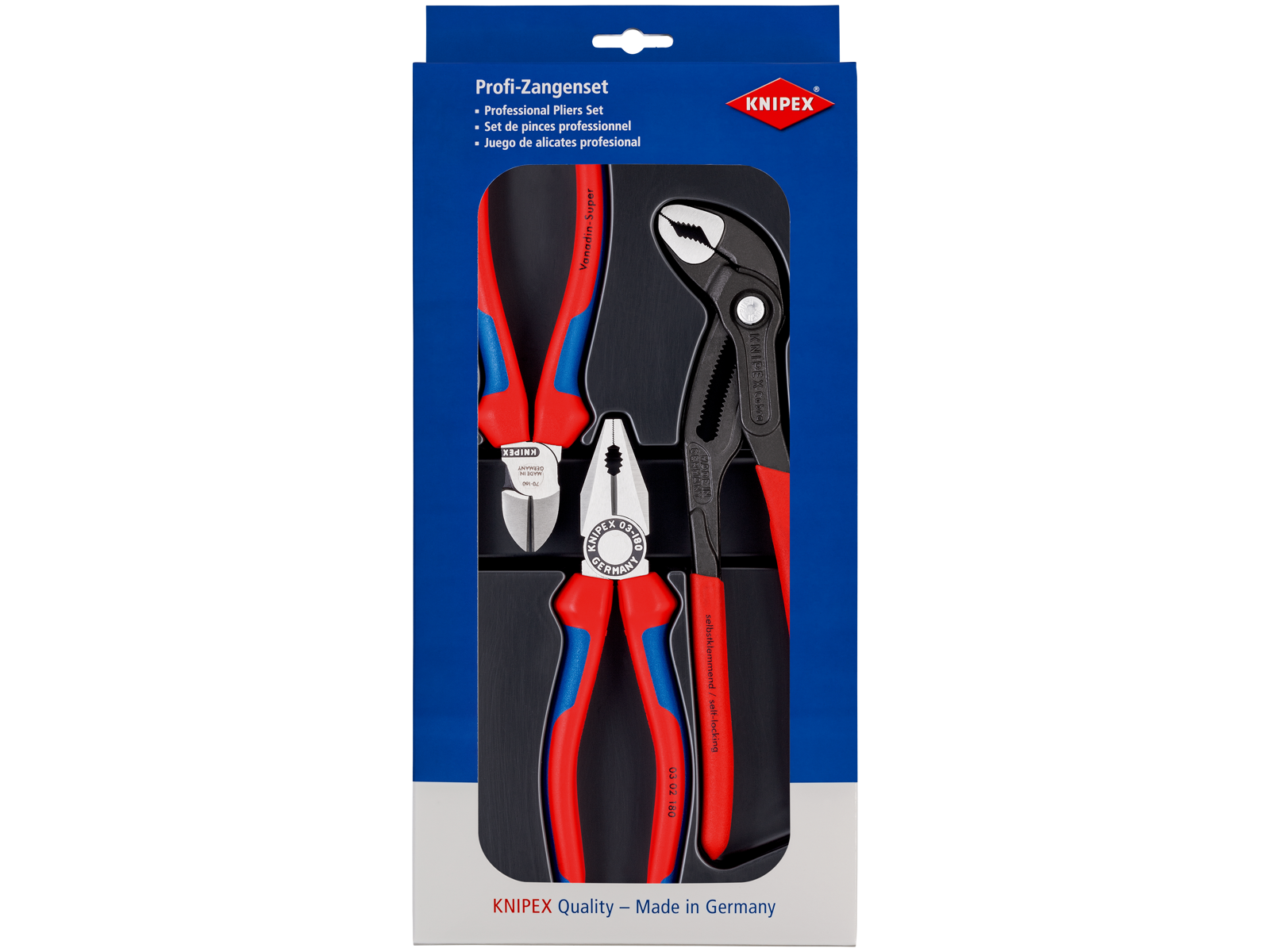 KNIPEX 00 20 09 V01 TANGSÆT KOMBITANG-SIDEBIDETANG-VANDPUMPETANG, 3 STK