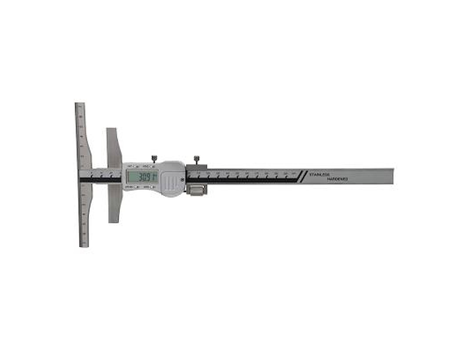 Digital marking caliper with range of 200mm and 100mm base.
