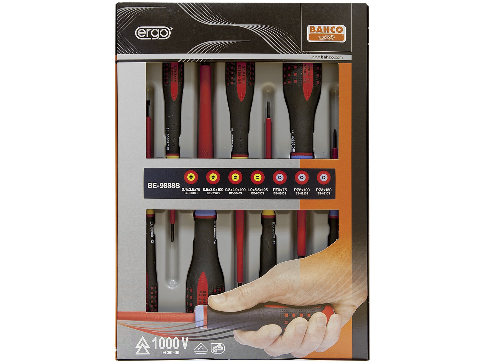 BAHCO ERGO SKRUETRÆKKERSÆT 1000V/VDE BE-9888S PZ + LIGE 7DELE