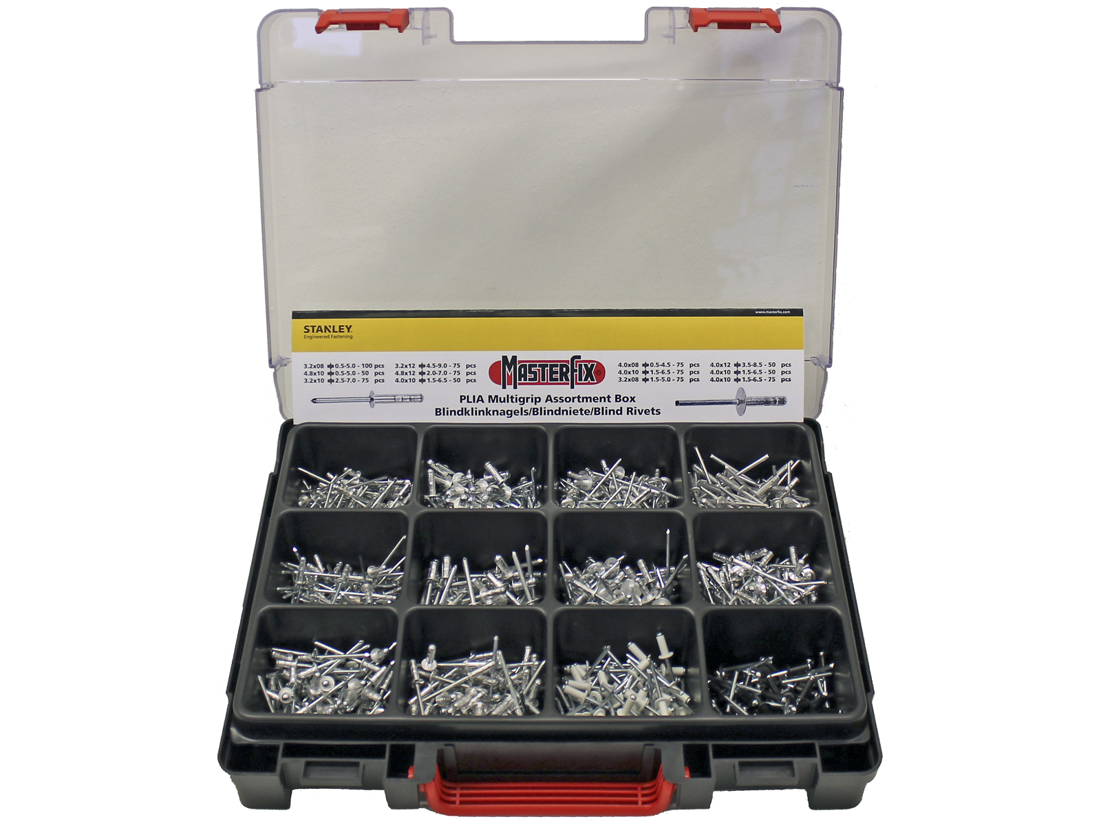 SORTIMENTSKASSE M/POPNITTER ALU/STÅL 3.2+4.0-4.8MM