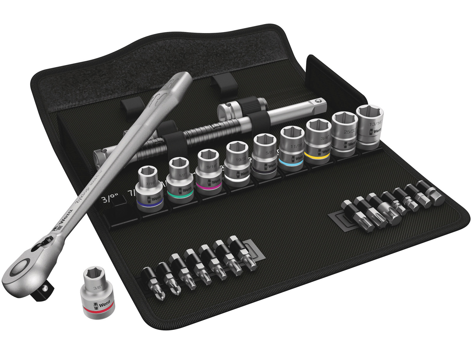 WERA ZYKLOP METAL-SKRALDESÆT 8100 SC 11, OMSKIFTERGREB, 1/2"-TILSLUTNING, TOMMEMÅL, 28 DELE