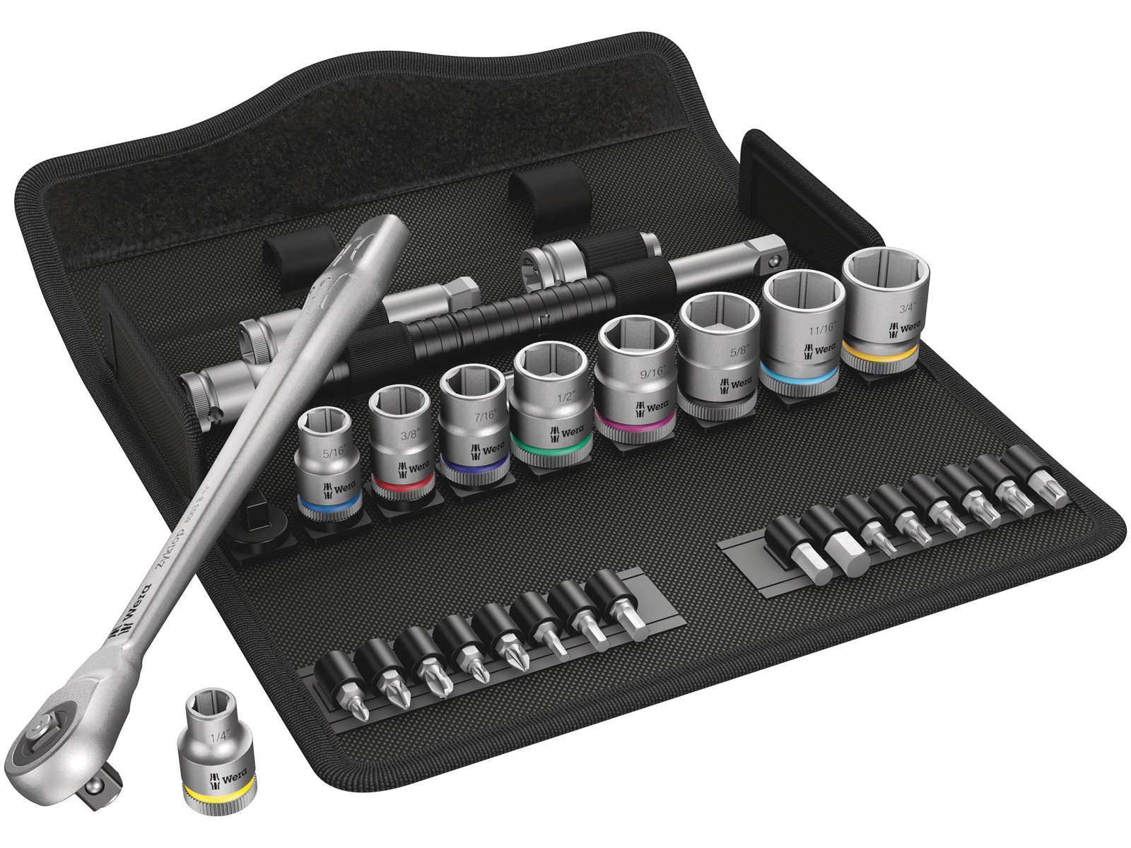 WERA ZYKLOP METAL-SKRALDESÆT 8100 SB 10, GENNEMSTIKSFIRKANT, 3/8"-TILSLUTNING, TOMMEMÅL, 29 DELE